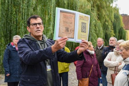 Stadsgids Chris vertelt er ons alles over tijdens deze boeiende uiteenzetting.
