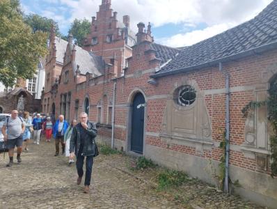 Luc Vermoesen, deskundige monumentenzorg, begon zijn rondleiding in het begijnhof. Over de godshuizen, de berg van barmhartigheid en de pelgrimstafel kon hij in de nog resterende gebouwen van het noordelijk gedeelte van de stad veel vertellen.