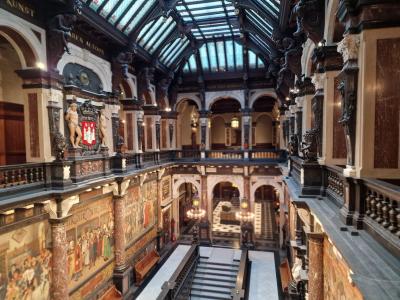 We krijgen een uitgebreide rondleiding 'grand tour' van bijna 2 uur, langs de façade en de gelijkvloerse ruimtes naar de mooiste zalen van het Schoon Verdiep (inclusief het Salon van de Burgemeester),het Eerste Verdiep en het Verlicht Verdiep met rondgang op de renaissance loggia,een panoramisch balkon met een onvergetelijk uitzicht op de Grote Markt. Deze activiteit is helaas volzet
