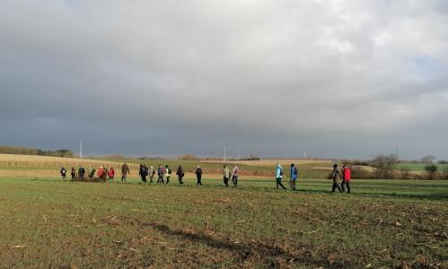 Een wandeling door een open landschap tussen de de kerktorens van Kobbegem, Hamme en Relegem.