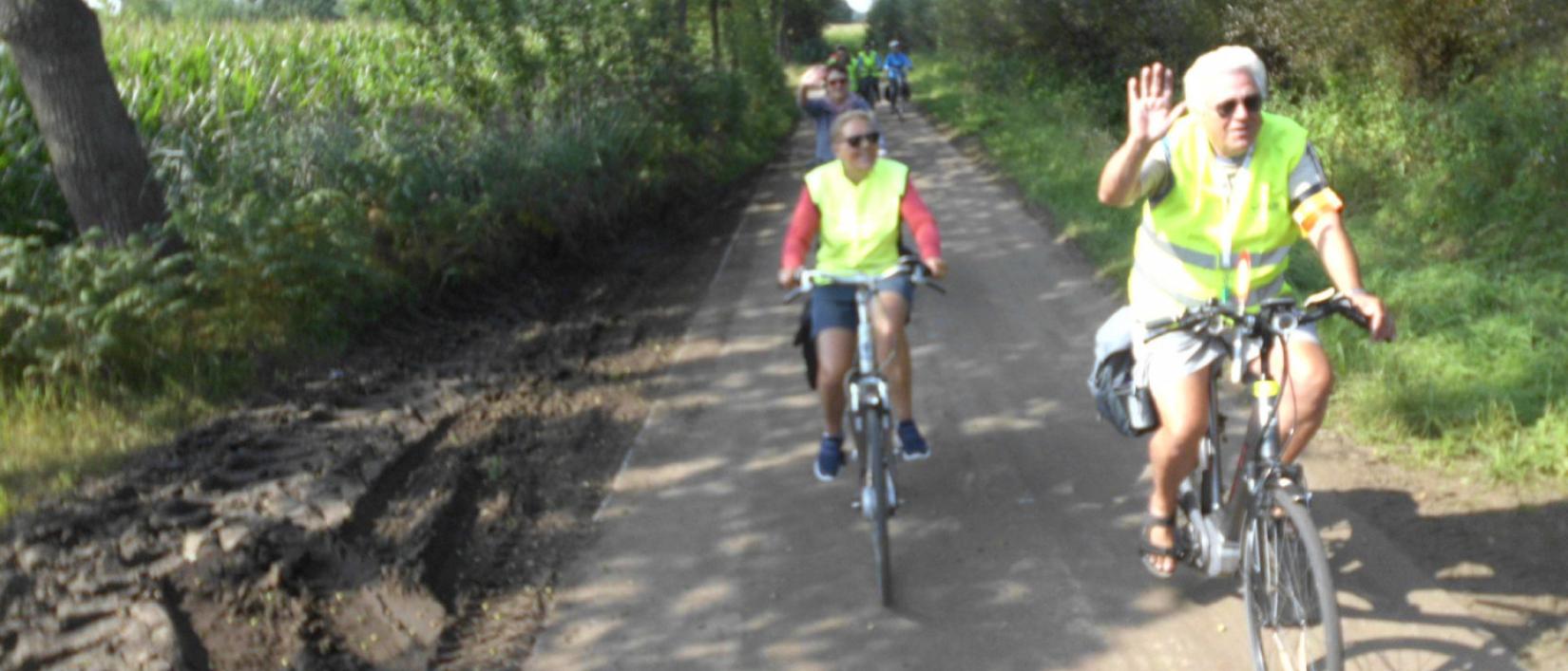 Zoals altijd onder leiding van onze gidsen, Lydia en Maria, en begeleid door de vertrouwde seingevers, fietsen we op een rustig tempo door onze omgeving.