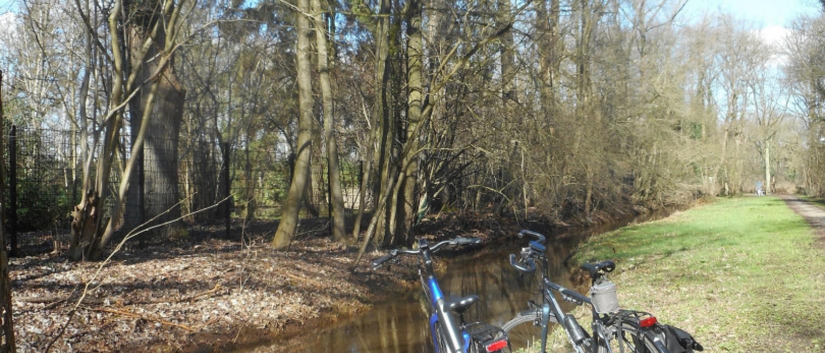 We fietsen van het Vrieselhof in Oelegem naar het Rivierenhof in Deurne. Beide zijn provinciaal groendomeinen en worden verbonden door de rivier de Schijn.