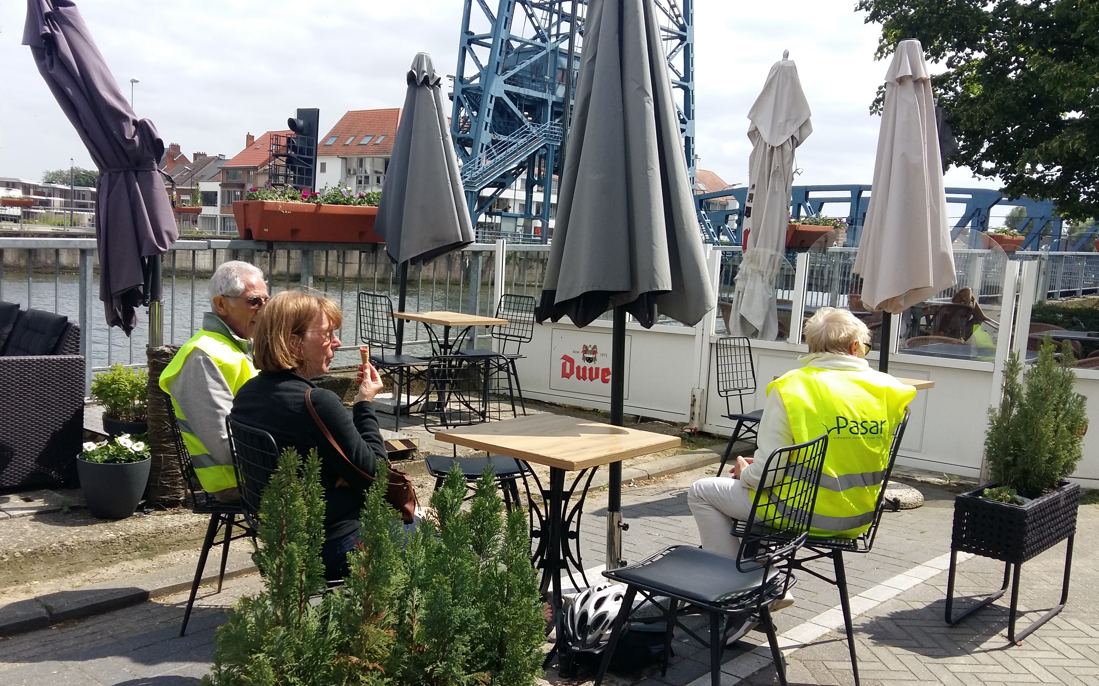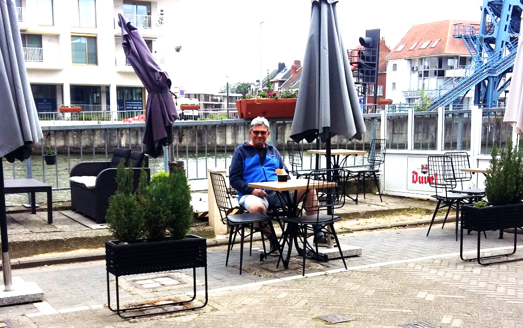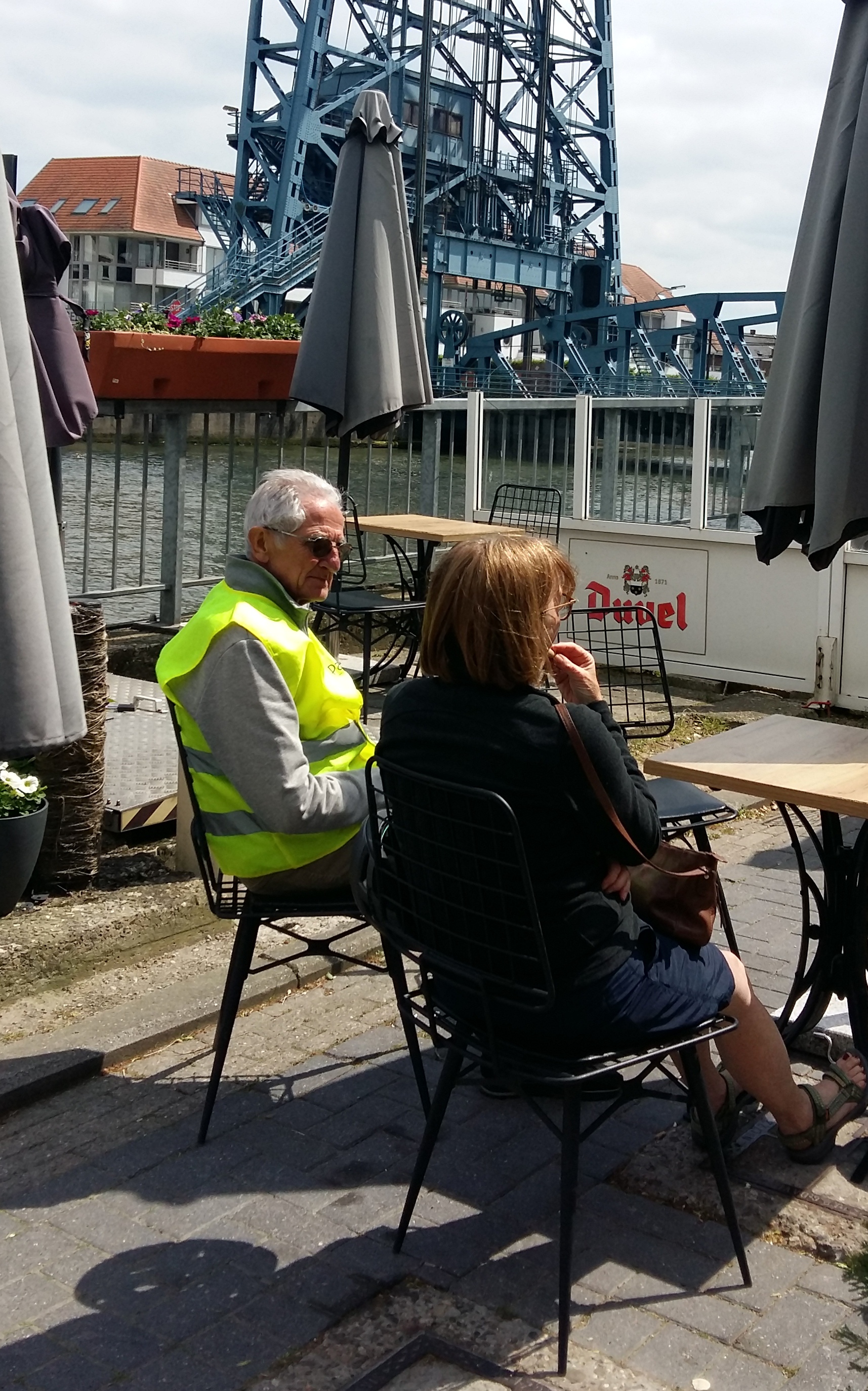 Na onze dagfietstocht: een welverdiend zeer lekker ijsje aan de Vredesbrug in Willebroek.