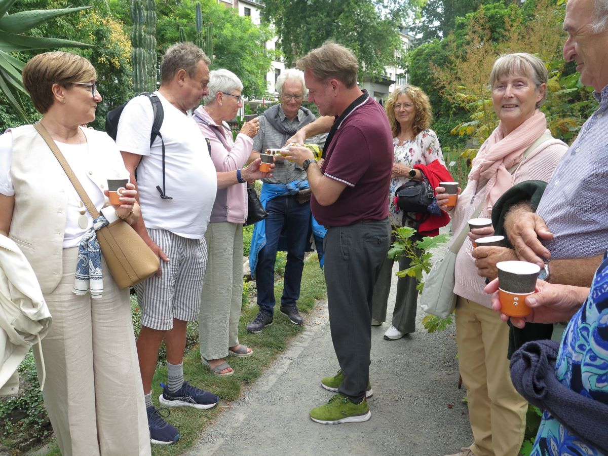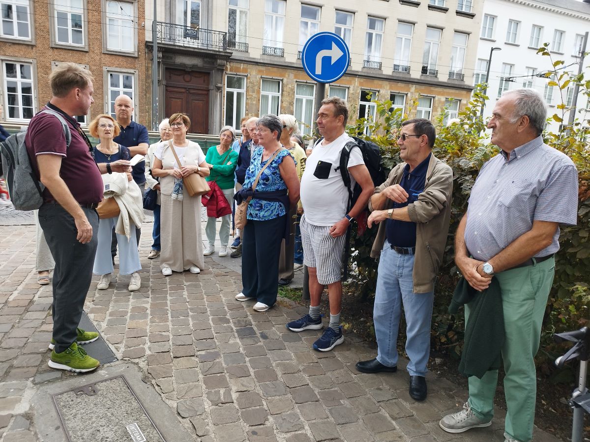 Onze gidstoer met Ivan startte op de Mechelse plein. Het was de bedoeling om eerst de Sint Joriskerk te bezoeken, die normaal om 14 uur zou opengaan. Maar, de kerk bleef gesloten. Dan maar met enkele foto’s uitleg over de kerk gekregen. De verdere wandeling van twee uur door de buurt bracht ons langs stadsdichters, musea, theater en andere geschiedenis van de wijk tot in de botanische tuin, welke vroeger een kruidentuin was. Zeer toepasselijk wachtte ons daar en verrassing en mochten we proeven van de befaamde kruidenlikeur “Elixir d’Anvers”. Langs het Rubens huis en de Meir sloten we af op de groenplaats bij het standbeeld van Rubens.