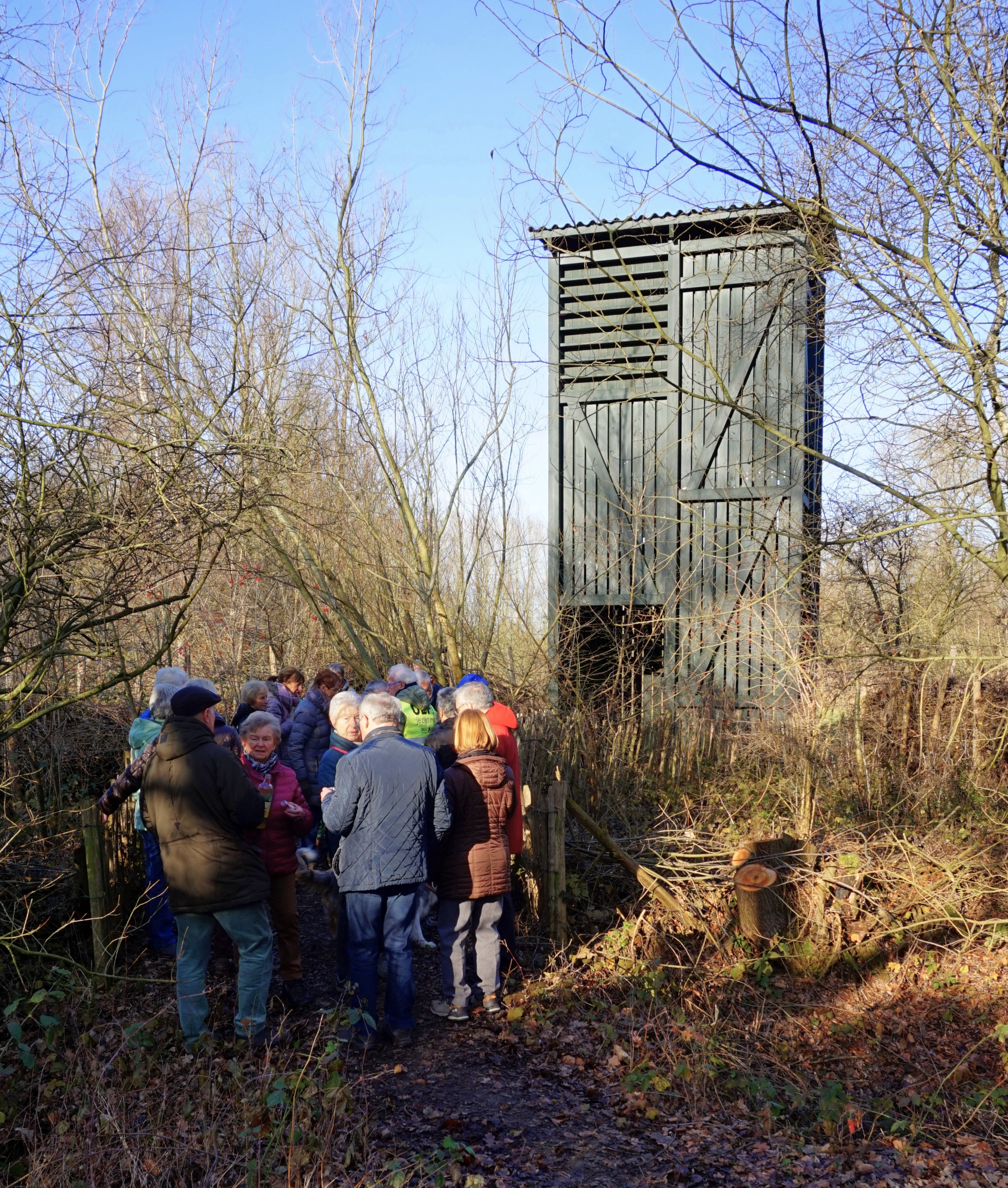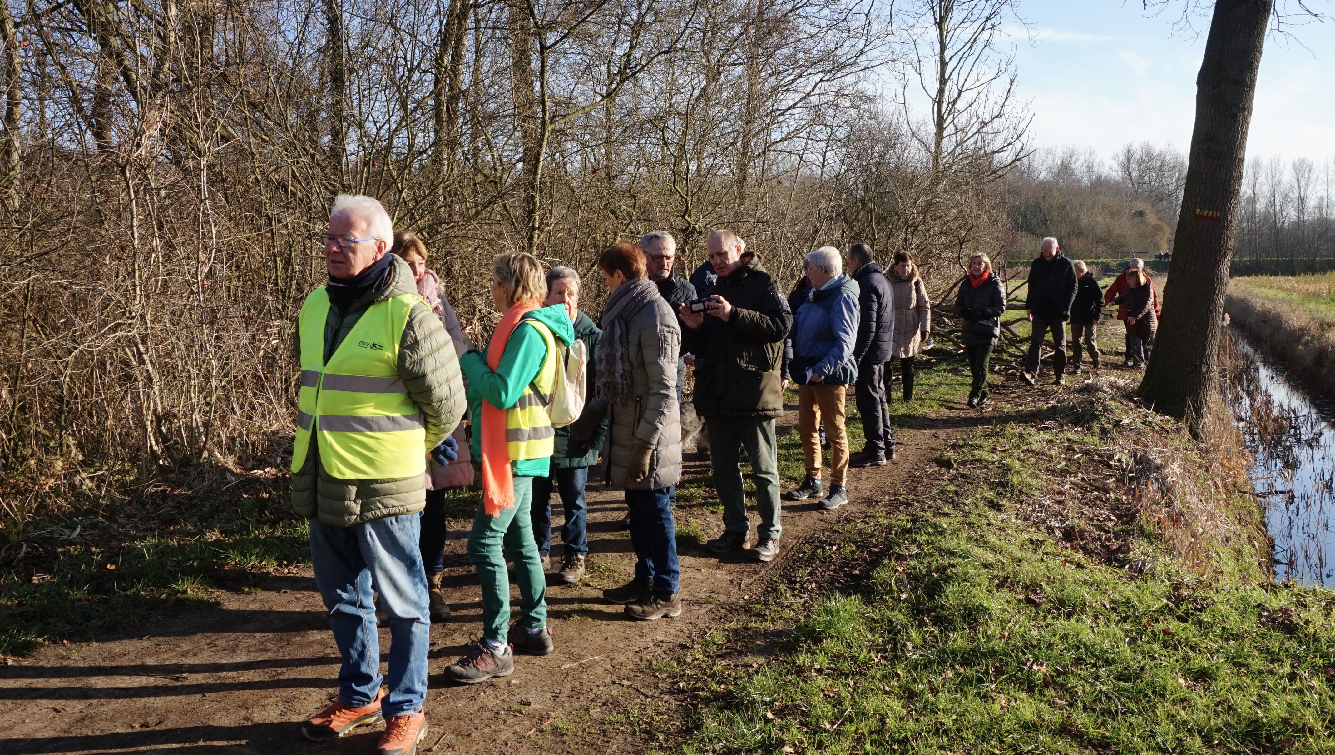 We starten op de grens van Klein-Sinaai en Sinaai aan de uitkijktoren, we verlaten het stilte gebied en wandelen naar de Koebrug. Waar we langs Stekense vaart en de Moervaart wandelen en komen zo in Klein-Sinaai waar we tussenstop hebben. We wandelen verder door bossen en dreven om op de dijk van vaart te komen die terug aan de start brengt. Onderweg drinken we een druppetje op het nieuwe jaar.