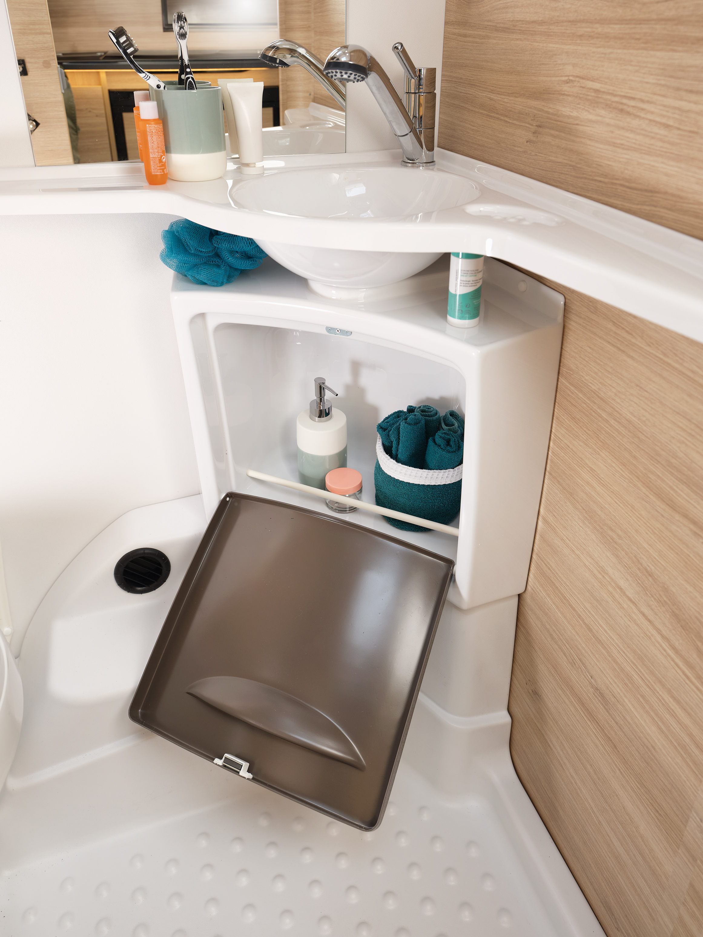 Nieuw is dat vanaf modeljaar 2026 alle Caravelair-modellen standaard een energiezuinige compressorkoelkast meekrijgen. Het interieur is fris en licht, met een lichtere tint blauw in de bekleding en zwarte accenten bij handgrepen, relingen en spotjes. De indirecte ledverlichting creëert een warme en eigentijdse sfeer. Voor wie nog wat extra uitstraling wil, biedt Caravelair optioneel het “Look”-pakket met aluminium velgen, een disselafdekkap en dakreling.