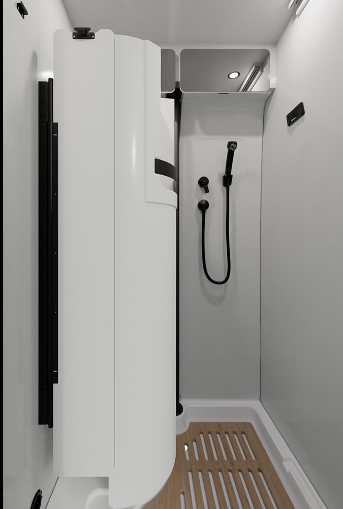 De populaire Ontour Van krijgt een volledig nieuw ontworpen draaibadkamer met geïntegreerde douche.