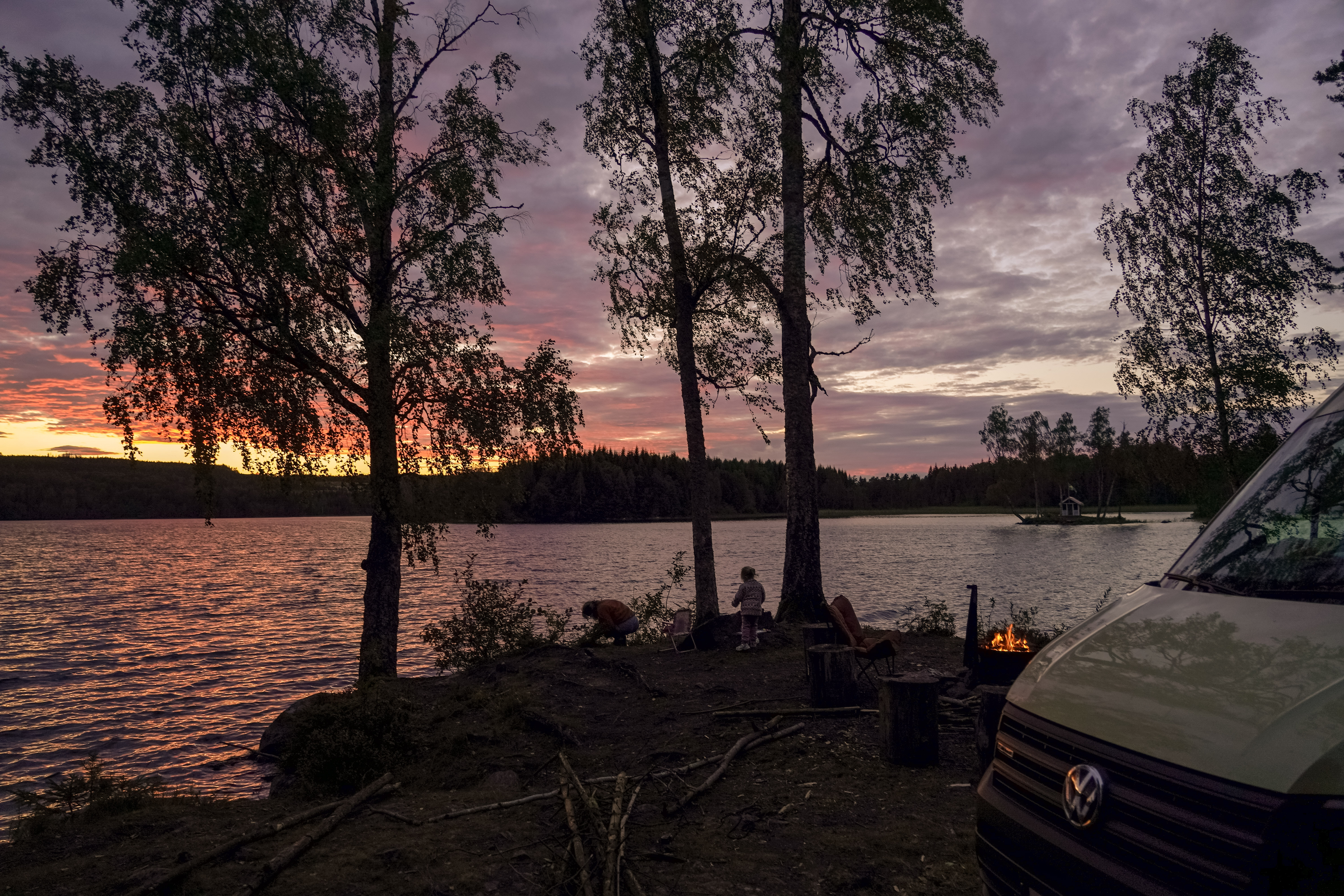 Zweden bracht ons terug naar de essentie van kamperen. De avonden leken er allemaal op elkaar, en dat bedoelen we op de best mogelijke manier. De camper op een mooi plekje tussen de bomen of aan het water, hout sprokkelen, een kampvuur en een zon die eindeloos laag boven de horizon bleef hangen. Buiten zijn, samen zijn & niets moeten. En zelfs zonder checklist konden we iets van onze bucketlist afvinken: we spotten een eland in het wild!