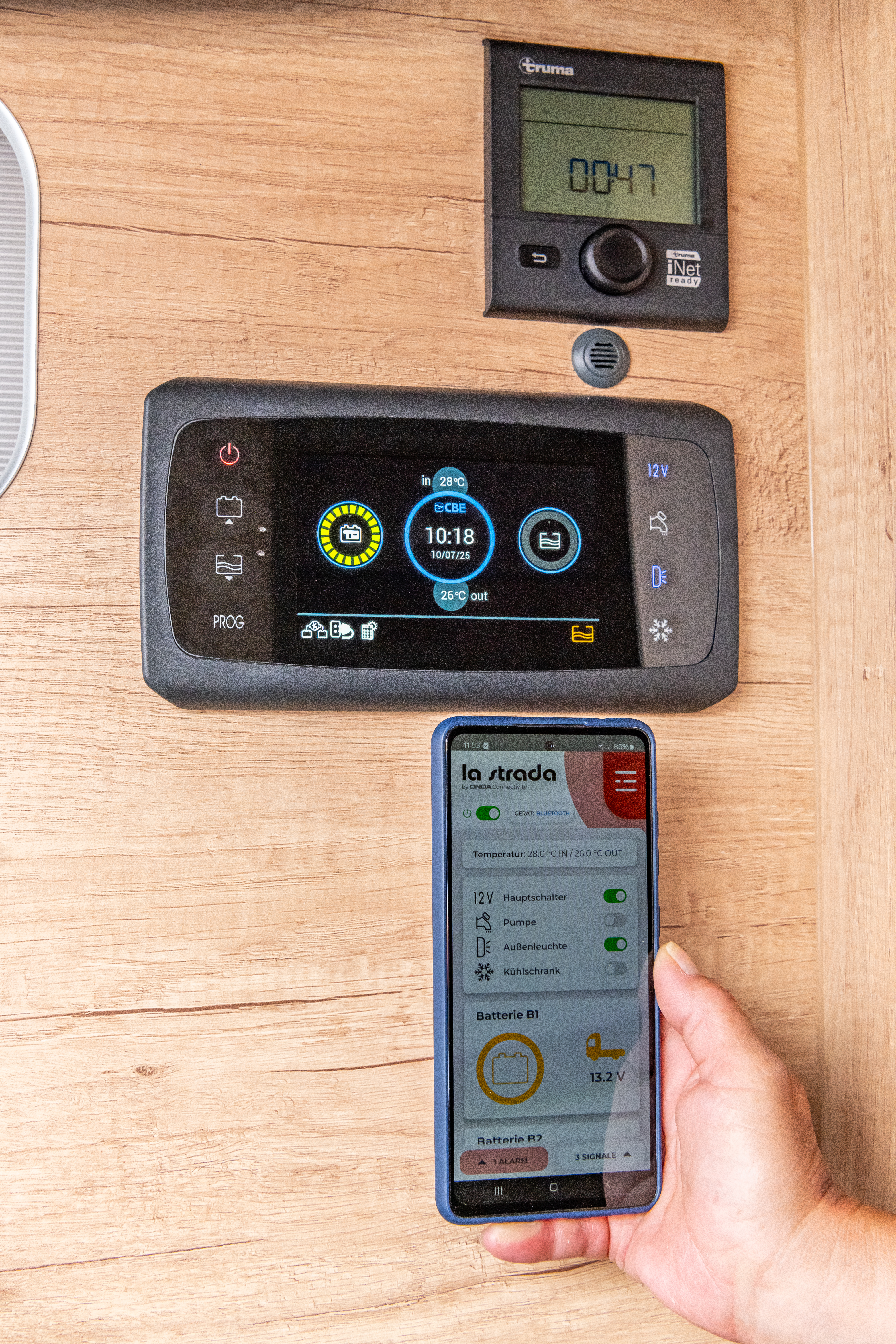 Met Smart Caravaning worden de Avanti-, Regent- en Nova-modellen uitgerust met een digitaal bedieningspaneel dat ook via je smartphone-app toegankelijk is. Zo kan je vulstanden, temperatuur en voertuighelling uitlezen en functies zoals verwarming, koelkast, waterpomp, buitenverlichting en 12V-stroom bedienen.