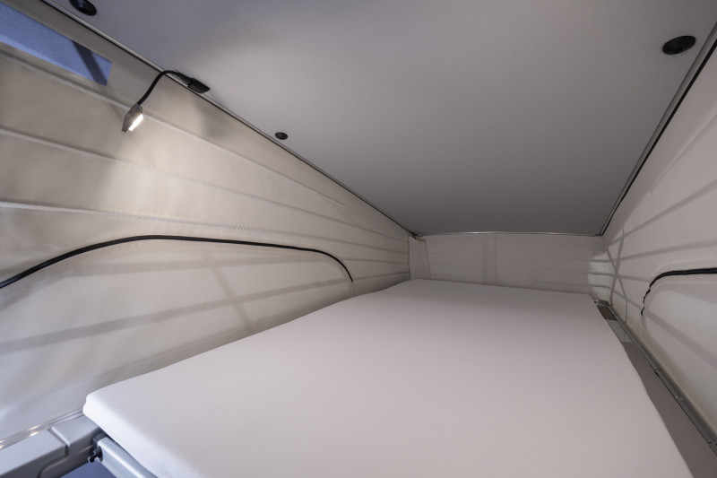- Een verbeterd woon- en slaapconcept: het nieuwe pop-updak bestaat uit een robuuste en lichte dubbelwandige aluminium schaal. Naast een uitstekende stabiliteit en isolatie in vrijwel alle weersomstandigheden, biedt het nu 10 cm extra stahoogte wanneer het uitschuifbare achtergedeelte volledig is uitgeklapt. Dit verhoogt het woon- en slaapcomfort aanzienlijk.