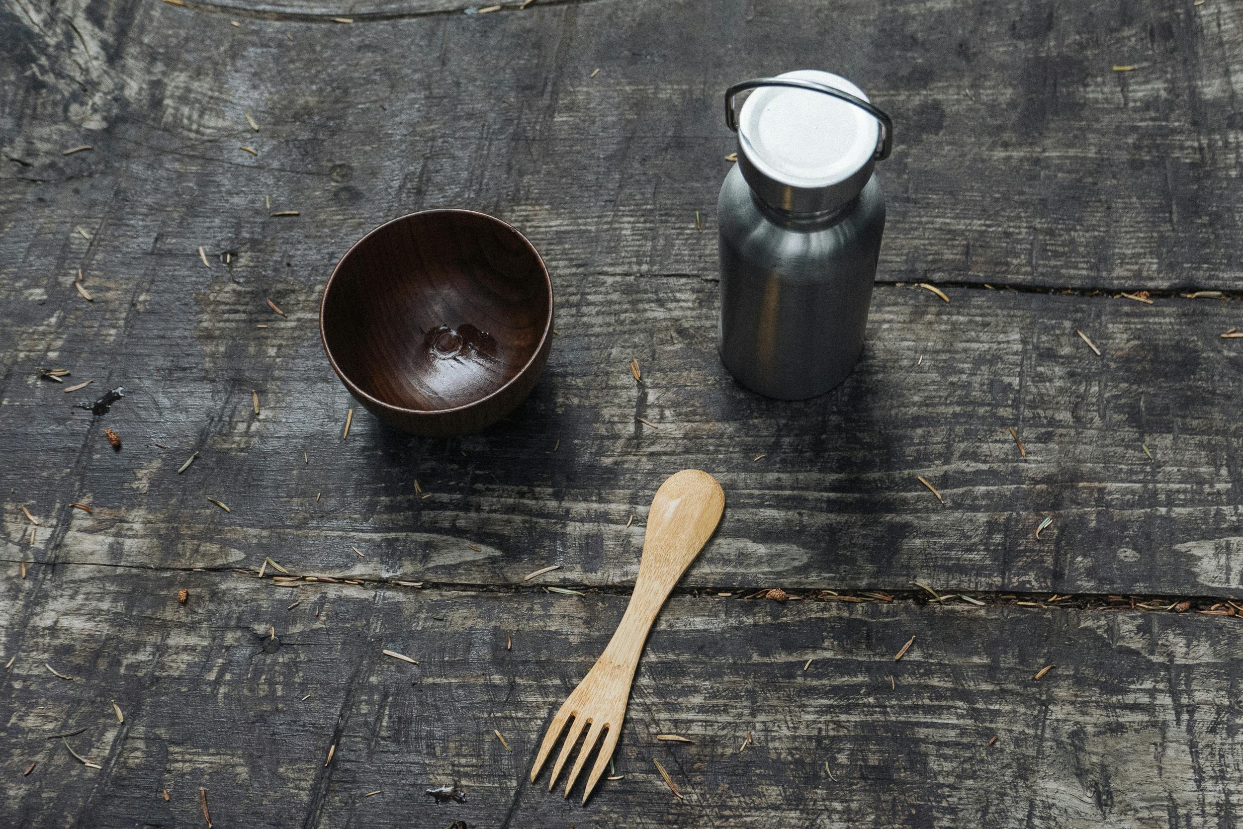 De makkelijkste winst: laat wegwerp achterwege. Met onze excuses aan de open deur die we zo-even brutaal intrapten. Denk aan een herbruikbare drinkfles, een koffiebeker uit email of een bestekset uit bamboe. Kampeer je slechts sporadisch en wil je geen al te grote investeringen doen? Kijk eens in de keukenkast, wellicht heb je al bruikbaar materiaal. Een lepel en een vork uit de besteklade wegen niet zoveel meer dan die vederlichte spork.