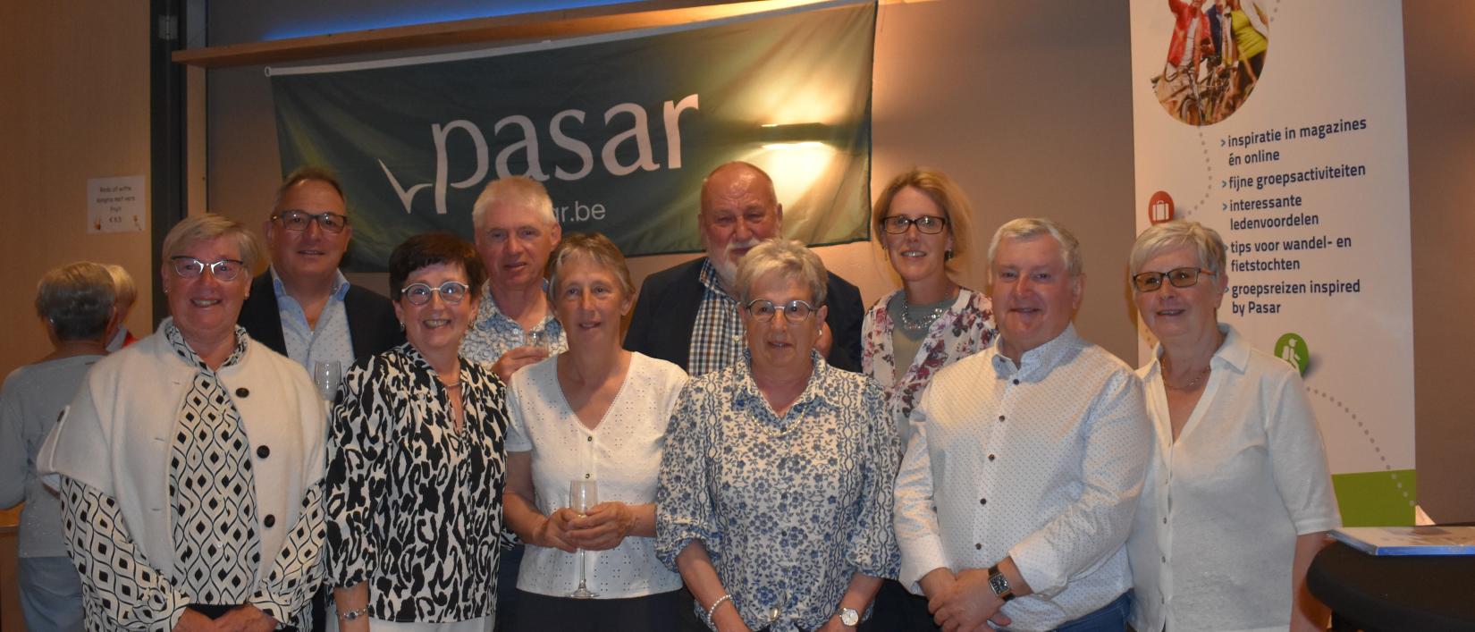 Groepsfoto van de medewerkers samen met de voorzitter van de Cultuurraad en Heidi De Smet van Pasar Nationaal tijdens de viering van 40 jaar Pasar Zele