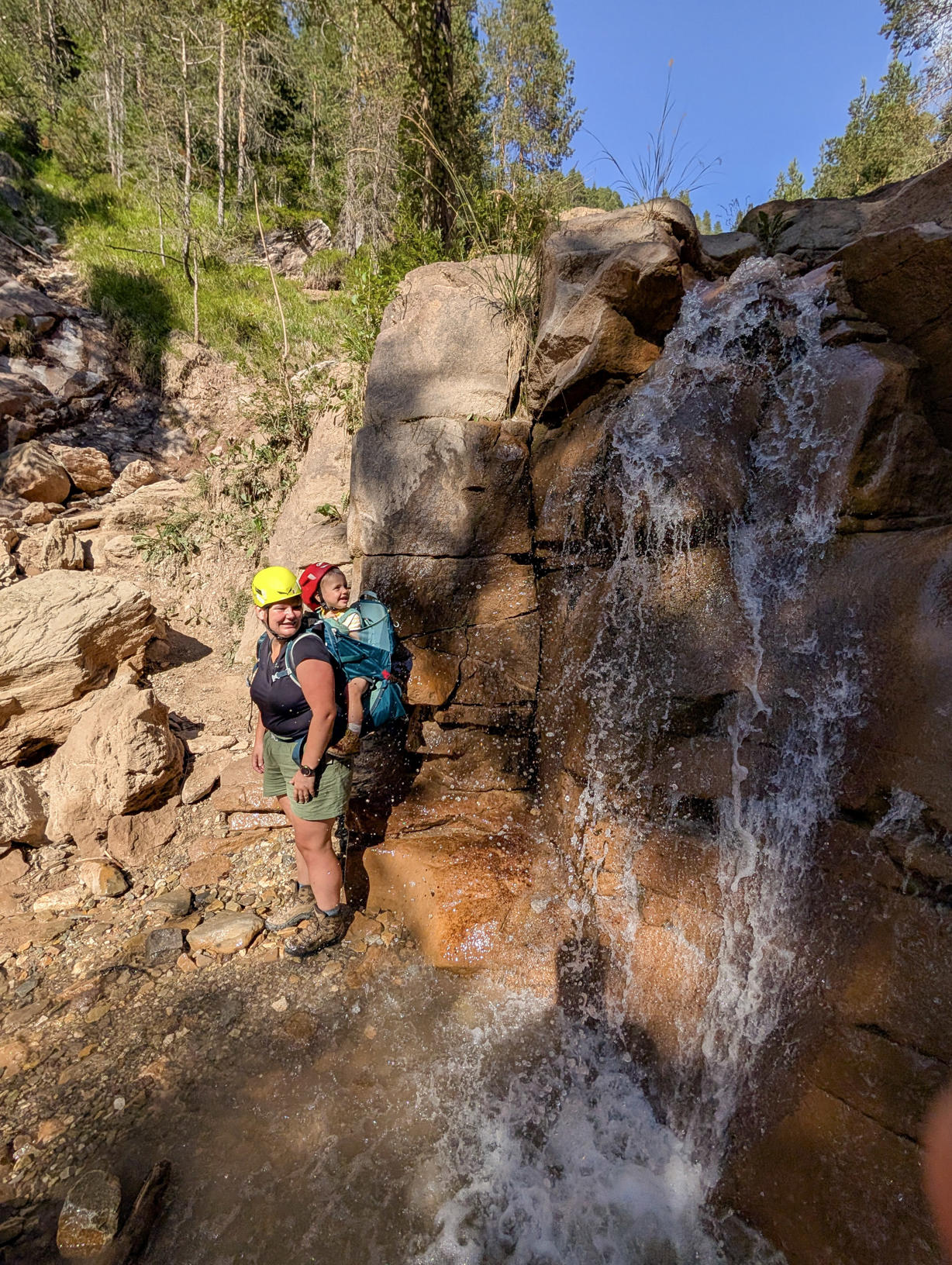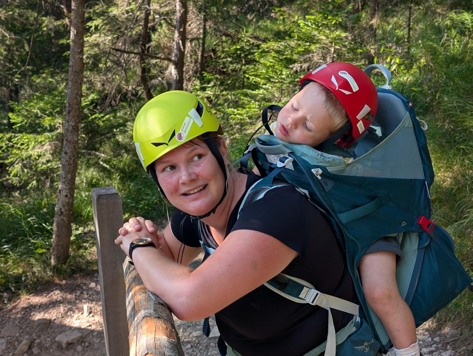 De kloof ligt aan de rand van het dorp Aldein, niet ver van Latemar. We besloten er na ons bezoek aan Latemar naartoe te rijden. Met twee kinderdragers en nog anderhalf uur te gaan voor het bezoekerscentrum sloot, zou het tijdig afleggen van de route nipt worden. Met onze helmen scheef op het hoofd kwamen we uiteindelijk ruimschoots op tijd binnen. Hebben we ons gehaast en afgezien bij het verlaten van de kloof met beiden ongeveer 20 kg op de rug… Je mag gerust stellen van wel, al vonden we in de kloof wel wat verkoeling onder de watervalletjes.