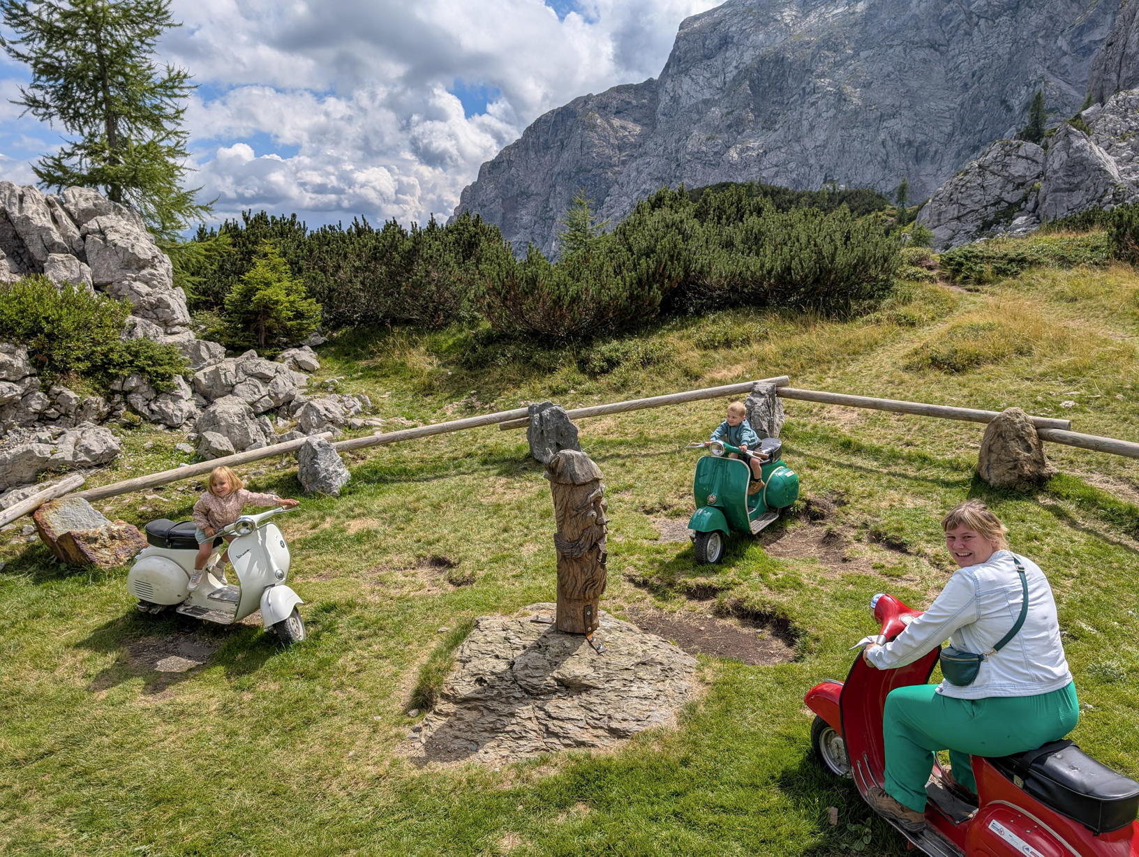 Je zou denken dat het hier eindigt? Mis! We rijden nog even verder naar het zuidelijke deel van Karinthië voor een verblijf bij ALPS RESORTS, partner van onze Pasar-ledenvoordelen. Chalets & Glamping Nassfeld bevindt zich bij de Karnische Alpen, waar de Millennium Express kabelbaan ons in een mum van tijd naar een hoogte van 1.900 meter en in het kielzog van de Rosskofel brengt. Hier volgen we de Aqua Trail, een speels pad met waterspelen, fonteinen, dammen, speeltuigen, trampolines en glijbanen. Eerst bergafwaarts, vervolgens al stijgend, volgen we een paadje van 1,5 km. Tijdens de route steek je verschillende keren de Italiaans-Oostenrijkse grens over. De kleurrijke vespa’s in groen, wit en rood maken ons duidelijk wanneer we waar we ons bevinden, net zoals enkele ludieke tolpoortjes. Al ziet onze zoon er een huisje in om gelato te verkopen…