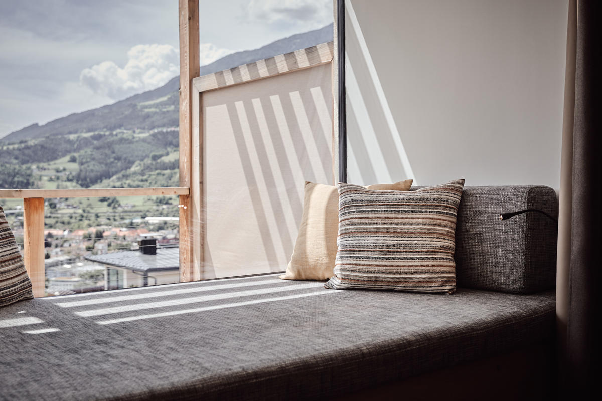 Op een zonnige helling van Bolzano/Bozen ligt het Pfösslerhof. De vakantieboerderij biedt een prachtig uitzicht over de stad, haar luchthaven en de wijn- en fruitgaarden in het dal. De rollen op het erf worden goed verdeeld: Klaus en zijn zonen ontfermen zich over hun boerderij, terwijl echtgenote Manuela en dochter Léa de logies uitbaten. Zoals je kunt lezen in dit interview, zijn de boerderijen in Zuid-Tirol relatief beperkt in omvang, waardoor een tweede activiteit vaak welkom is. Houtbewerker/interieurarchitect Klaus zag de creatie van zijn gastenkamers als een corona-activiteit, maar besloot ook om meer in te zetten op de teelt van witte druiven en om meer koeien te houden, omdat ze gewoonweg meer opleveren. Het voordeel van zo’n beperkte boerderij, is dat je je eenvoudig kunt aanpassen aan de markt.
