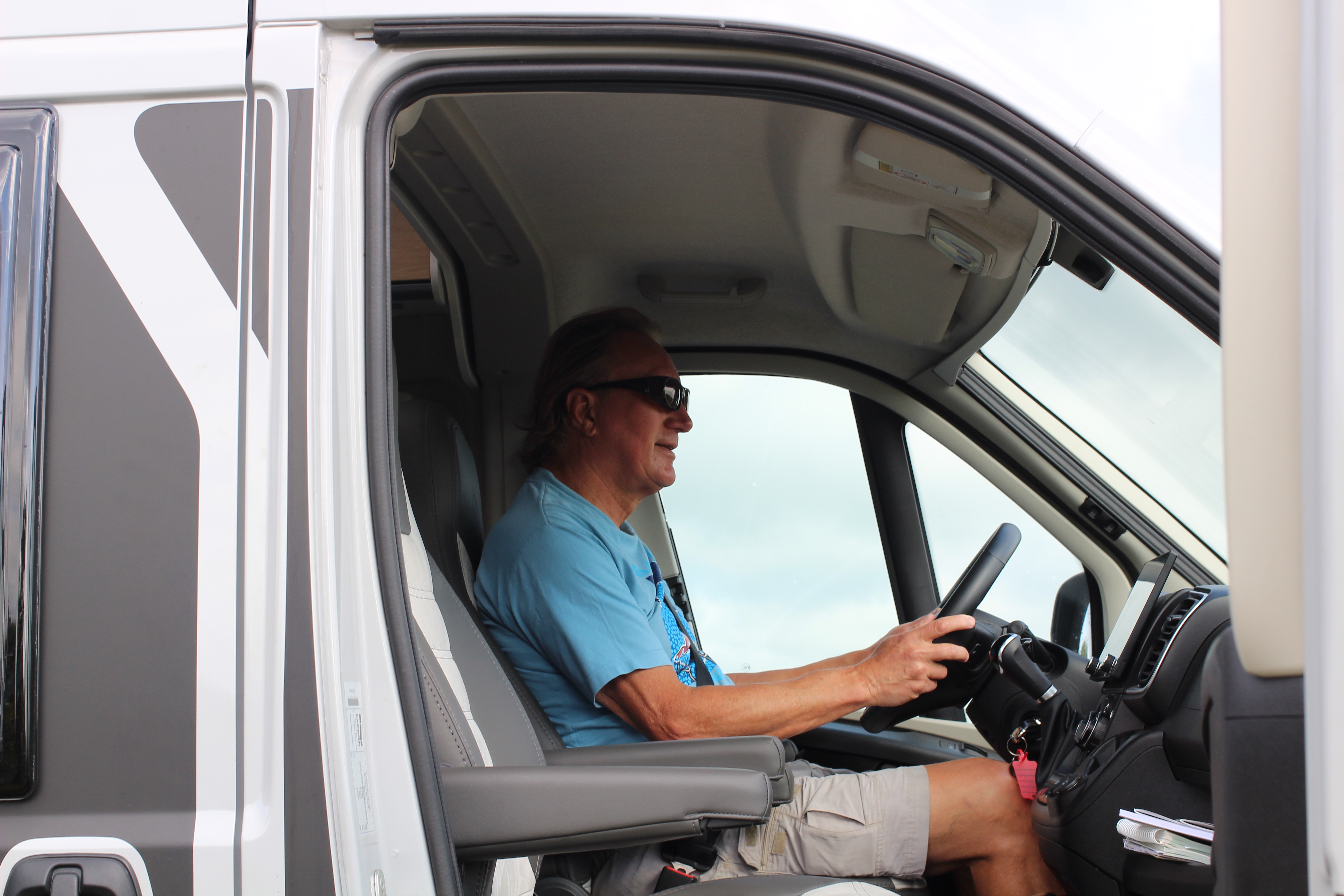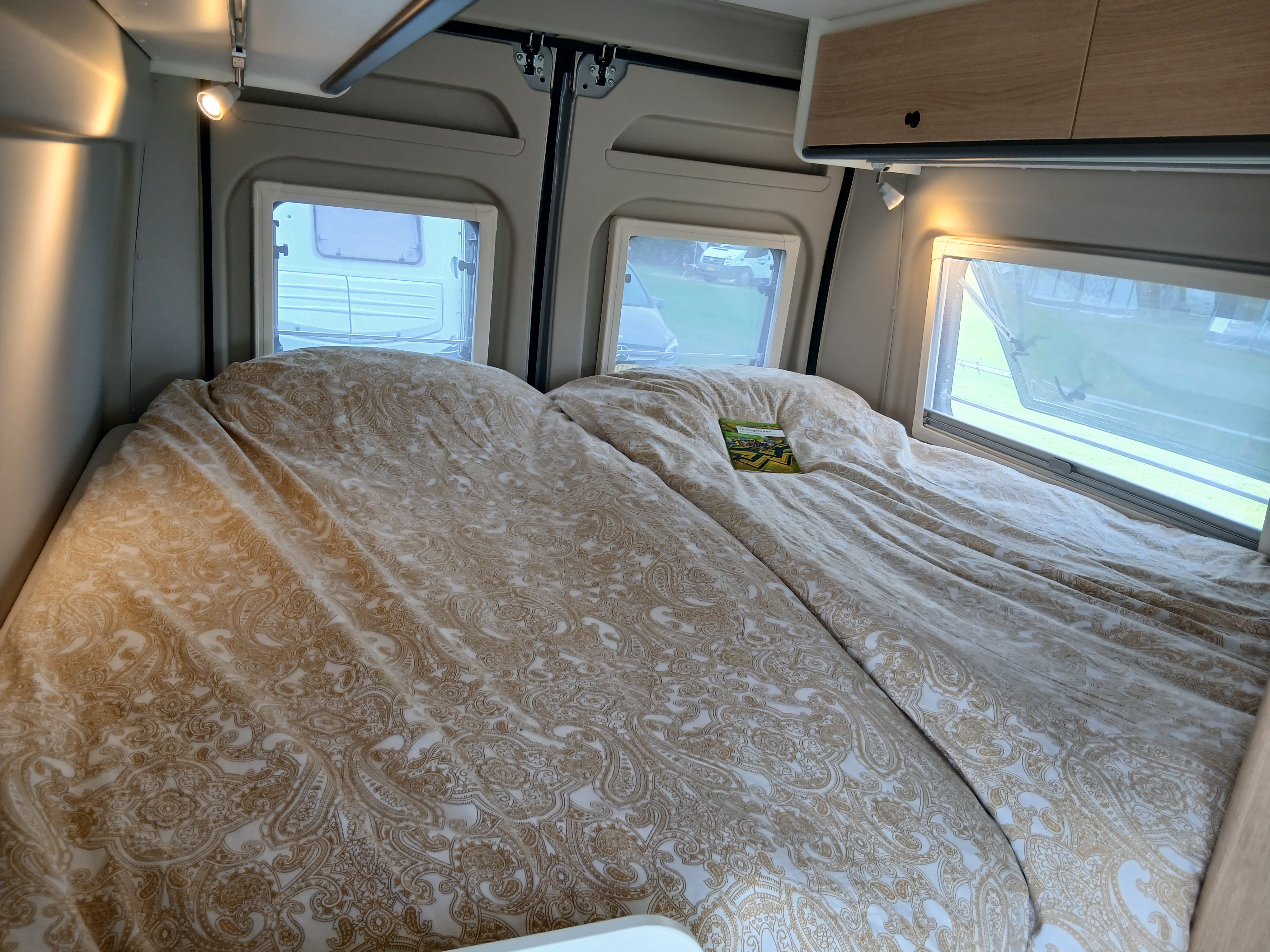 Tot slot, ook niet onbelangrijk, hoe rijdt ie? Dat is een beproefd recept met de Fiat Ducato als basis. De camper is door zijn compacte afmetingen lekker wendbaar, ligt stabiel op de weg en is in zijn element op de kleinere wegen en in dorpen en kleine stadjes. En op de snelweg is hij echt krachtig, met zijn 2,2 multijet diesel, in combinatie met de 8-traps automaat. De stevige pilotenstoelen met opklapbare armleuningen dragen bij aan het rijcomfort. Het dashboard oogt modern en functioneel en is eenvoudig te bedienen. In de middenconsole zit een groot multimediascherm, met achteruitrijcamera. Wat we wel een beetje missen, zijn parkeersensoren (zijn wel als optie leverbaar) en een achteruitkijkspiegel. Want er zitten wel ramen achterin de Sunlight, waar je als bestuurder nu niets aan hebt.