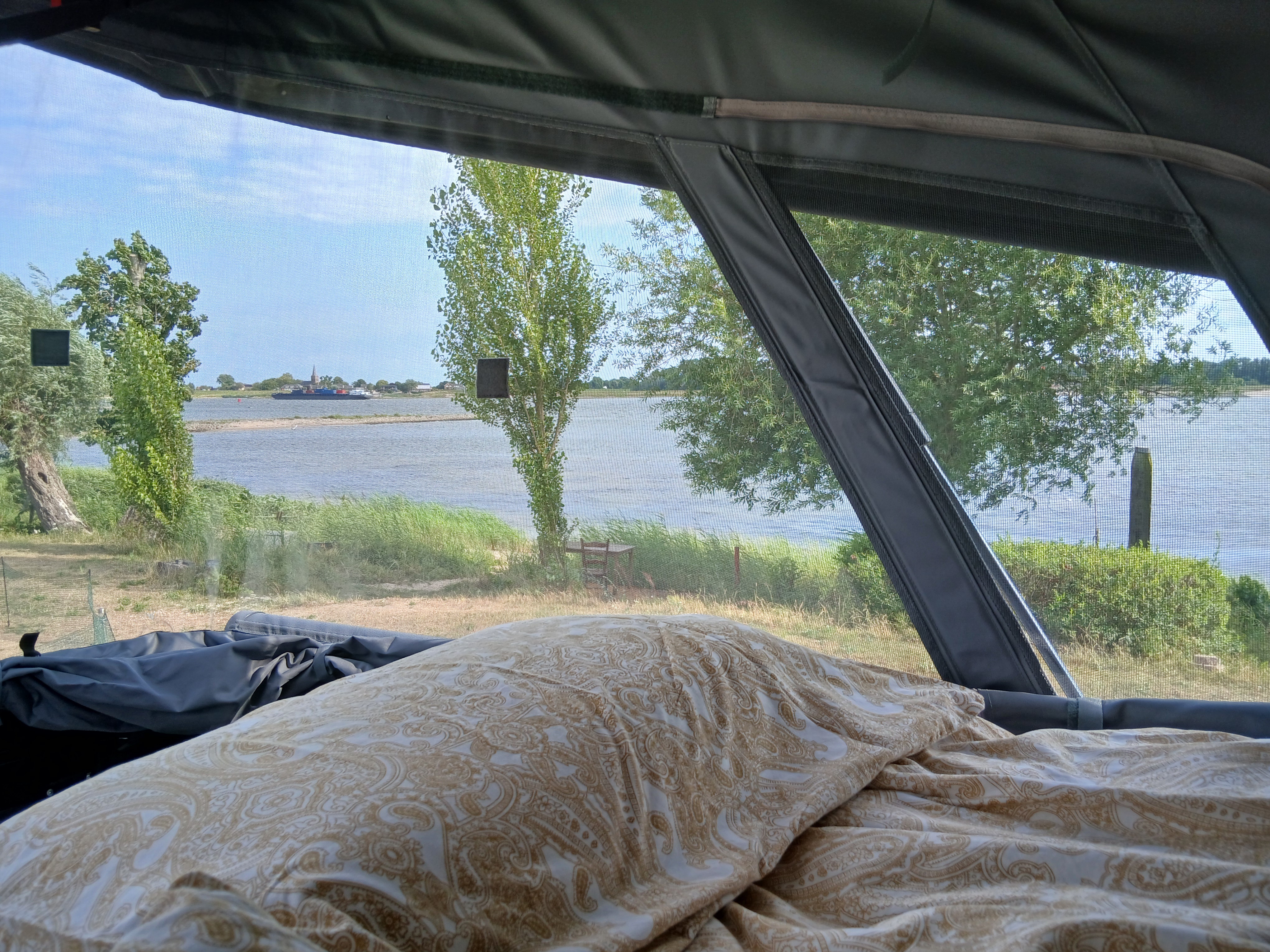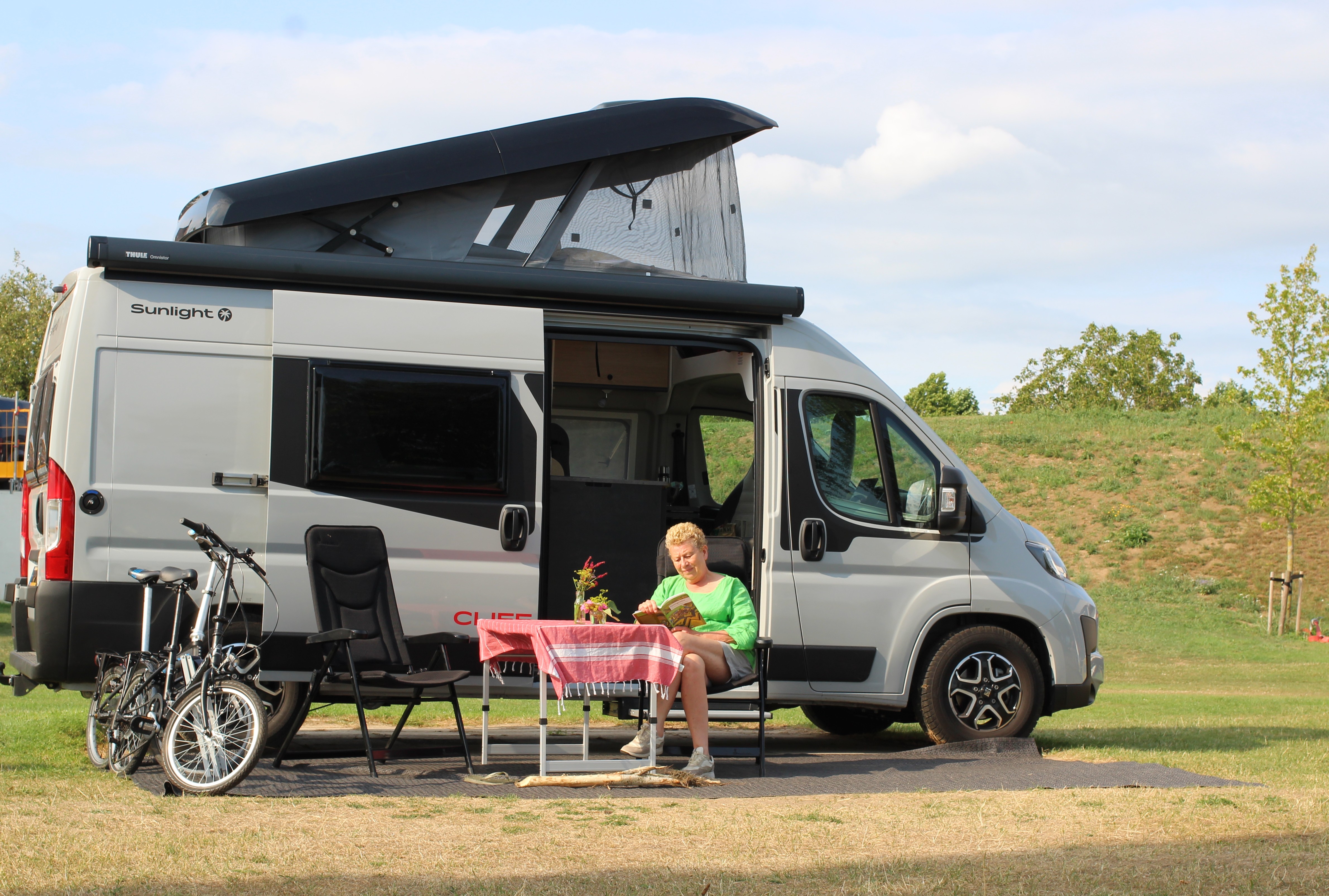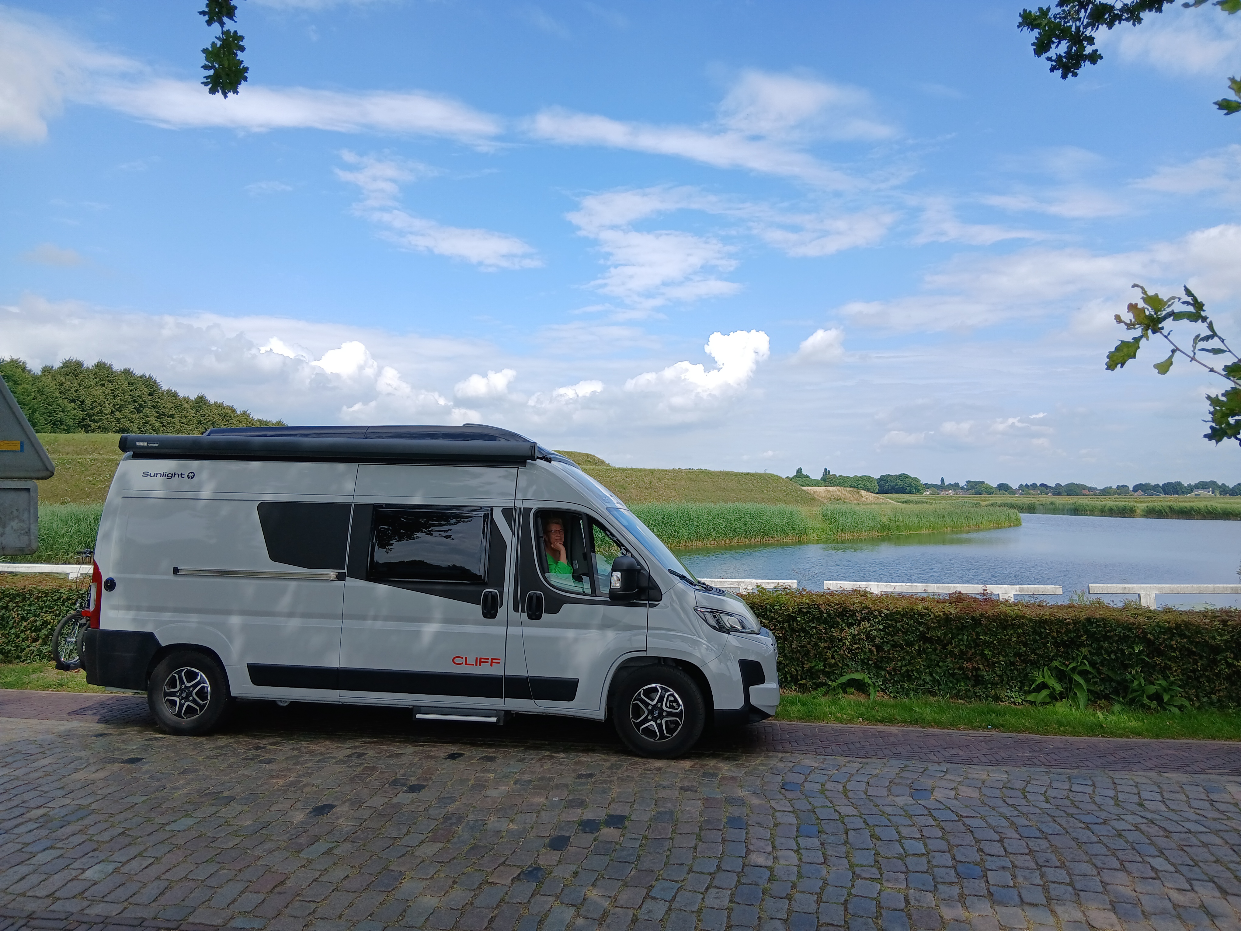 Een straaltje zonlicht schijnt vrolijk op mijn gezicht op deze mooie zomerochtend. Hoogste tijd om wakker te worden. En dat ben ik dan ook meteen als ik mijn ogen open. Want vanaf de hoge slaapplek op het camperdak heb ik een verpletterend uitzicht over de wijde omgeving. Met als blikvanger de brede rivier waar ik met de campervan Sunlight Cliff 602 Adverture Edition ben neergestreken. Een mooier begin van de dag bestaat niet.