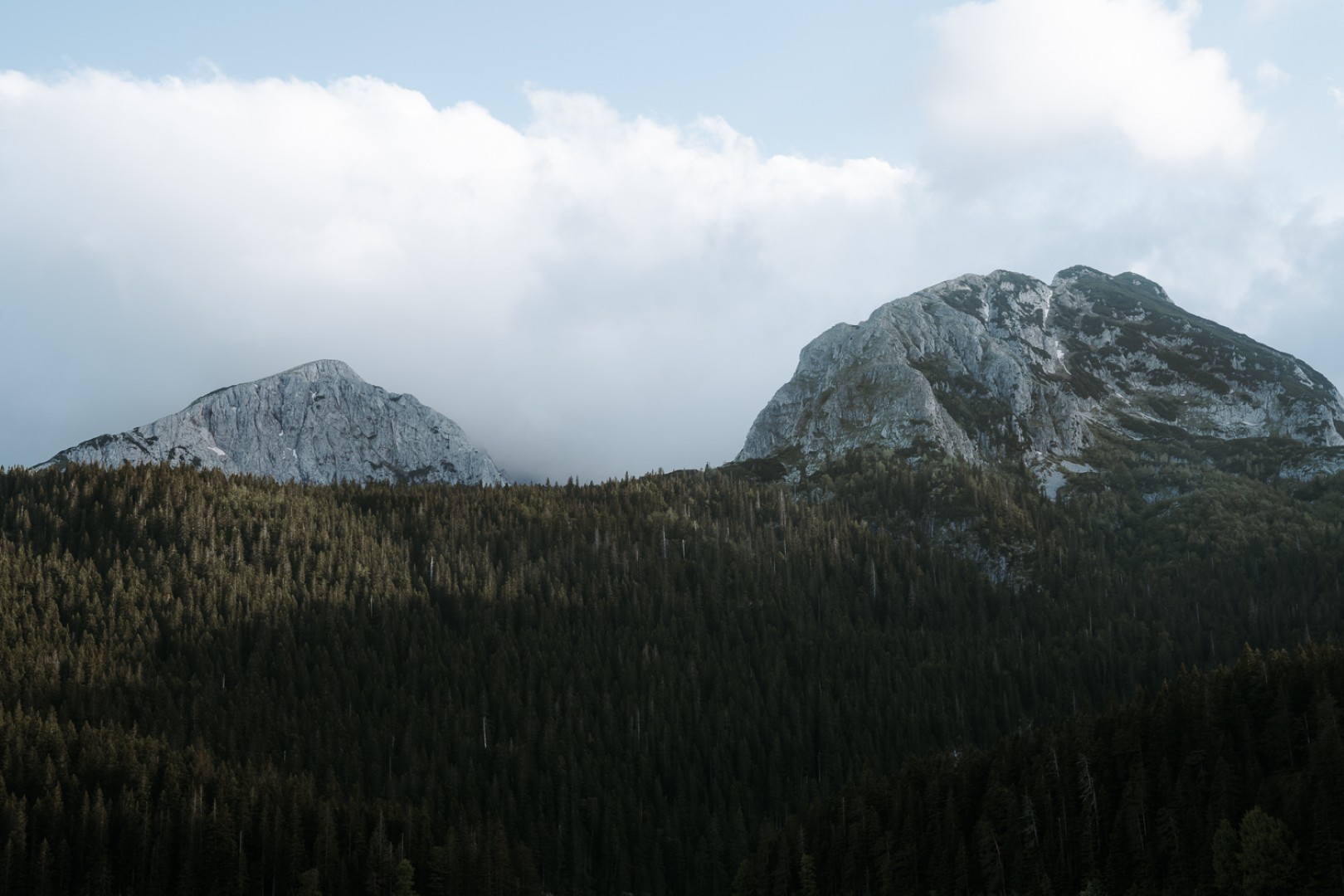 Bij het ontwaken werp ik een blik uit het raam. Buiten jaagt een kille wind over het plateau waarin Žabljak ligt. Stroken zonlicht breken door het wolkendek, maar worden meteen weer opgeslokt. Voor me liggen de ruwe pieken van het Durmitormassief, gehuld in wolken die zich met moeite over hun toppen hijsen.