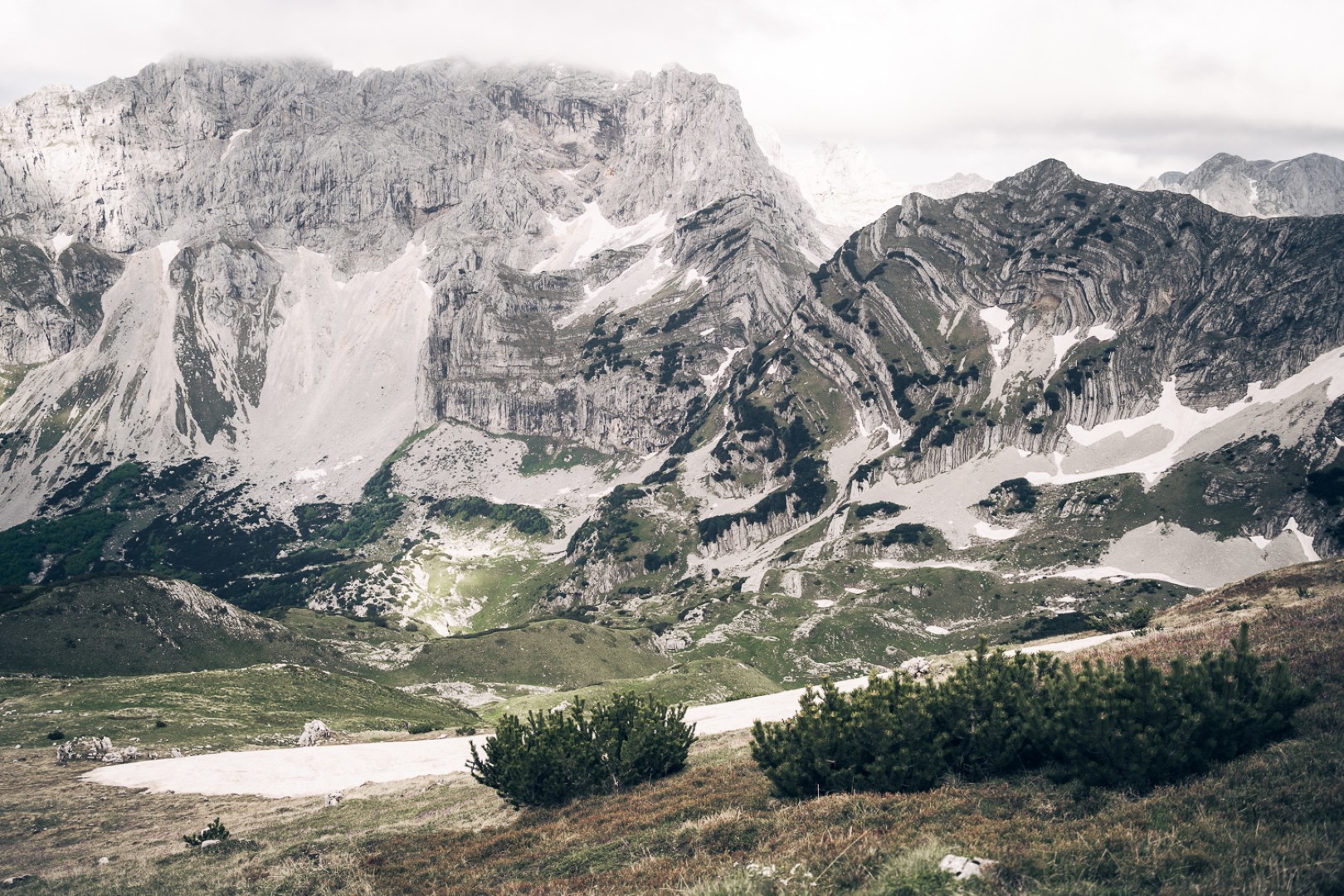 Crna Gora of ‘Zwarte Bergen’: zo noemen de Montenegrijnen hun land. De naam is ooit ontstaan aan de Adriatische kust, waar zeelieden de donkere, beboste hellingen boven Kotor uit de mist zagen oprijzen. Maar ook hier, ver van de zee, klopt het beeld. De onderste flanken van Durmitor zijn bedekt met dichte dennenbossen, hogerop geven die de fakkel door aan kale zwarte rotswanden, nog bedekt met vlekken sneeuw die sinds de winter zijn blijven liggen.