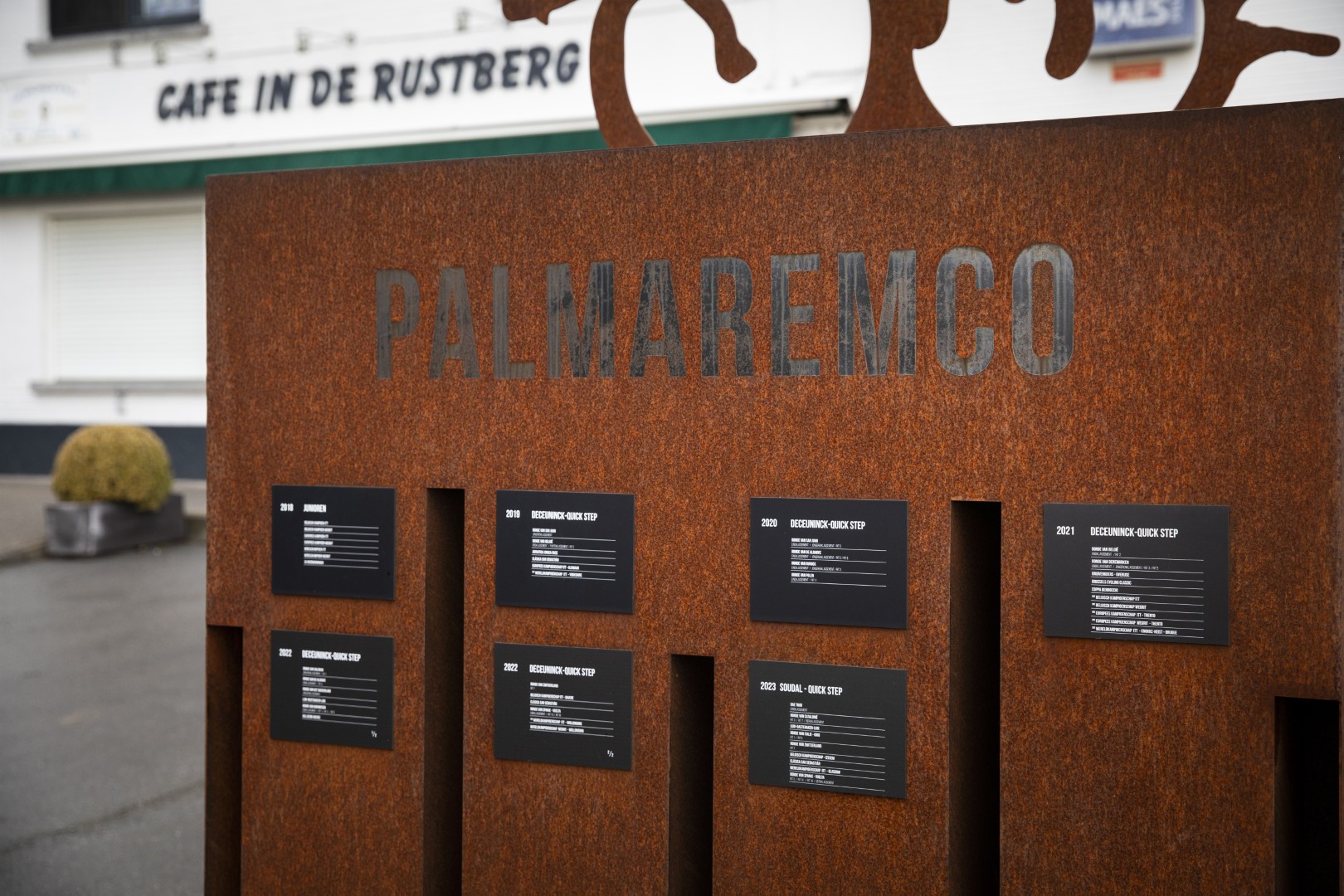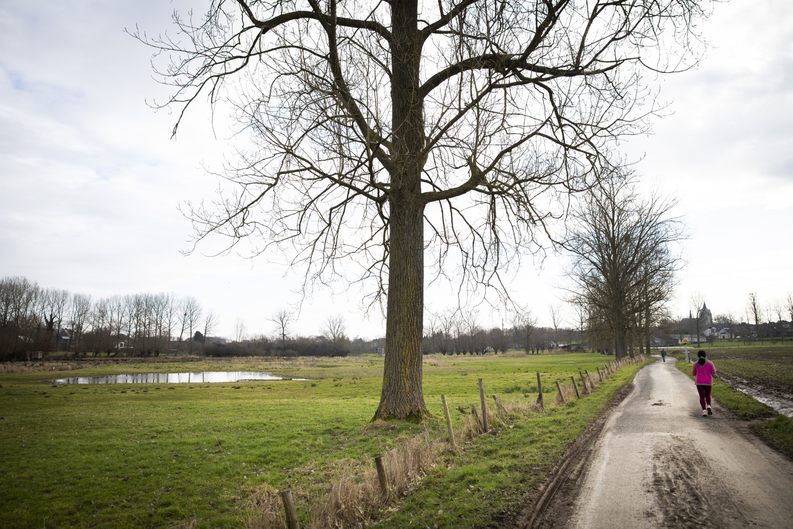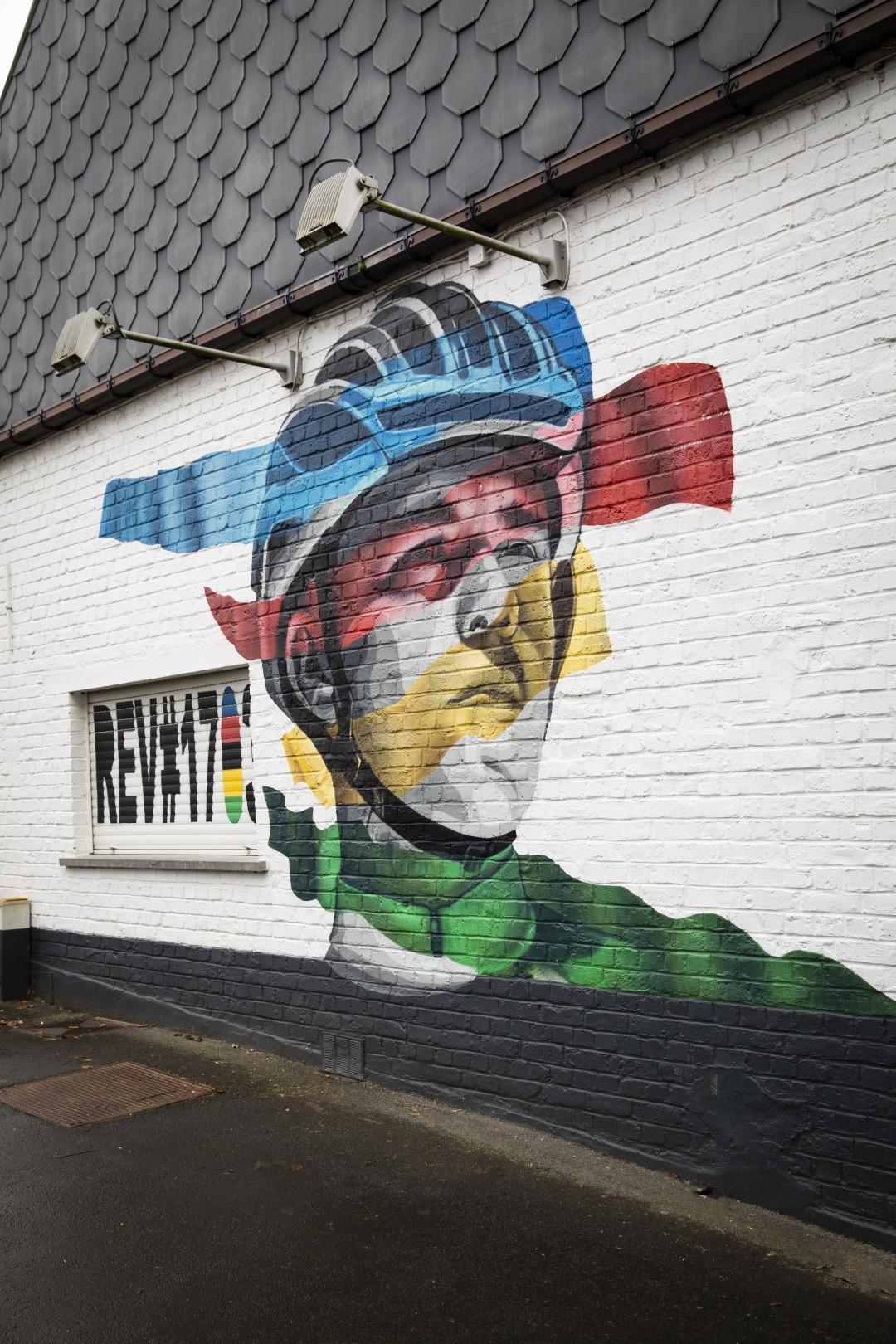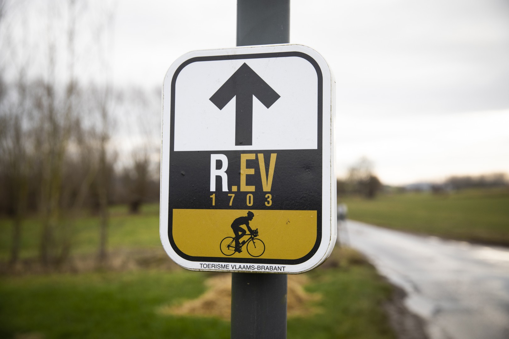 Plaats van afspraak is In de Rustberg, het supporterscafé van Remco Evenepoel. Een grote graffititekening van – jawel Remco – siert de zijgevel. Op de parking prijkt de Palmaremco, een verlicht monument in cortenstaal waar wielertoeristen ook hun fiets in kunnen stallen. Een gesprekje met uitbaters Guy en Jeannine, in een decor versierd met koerstruitjes en foto’s van de kampioen, leert ons dat veel bezoekers hier omwille van Remco komen. ‘Remco’s ouderlijke huis ligt hier vlakbij. Soms brengt hij ons nog eens een bezoekje, maar nu hij in Gooik woont, is dat wat minder. Sinds 2017 zijn we een supporterslokaal van Remco en zagen we het aantal bezoekers stijgen. Hier komen vooral veel wielertoeristen uit binnen- en buitenland die de bewegwijzerde R.EV 1703 rijden’, vertellen ze. Ook wij gaan in het spoor van Evenepoel fietsen, al wijken we nu en dan van de route af. ‘Met Pasar Dilbeek Rand hebben we een route uitgewerkt, gebaseerd op de 94 kilometer lange R.EV 1703, maar met een eigen twist. Onze tocht is 42 kilometer met beperkte hoogtemeters. Het Pajottenland is best een pittige regio om te fietsen. Als uitgangspunt hebben we het prachtige landschap met de vele vergezichten gekozen’, aldus Dirk. We fietsen door een landschap bezaaid met kapelletjes en versierd met knotbomen en holle wegen. En we zijn duidelijk niet alleen...