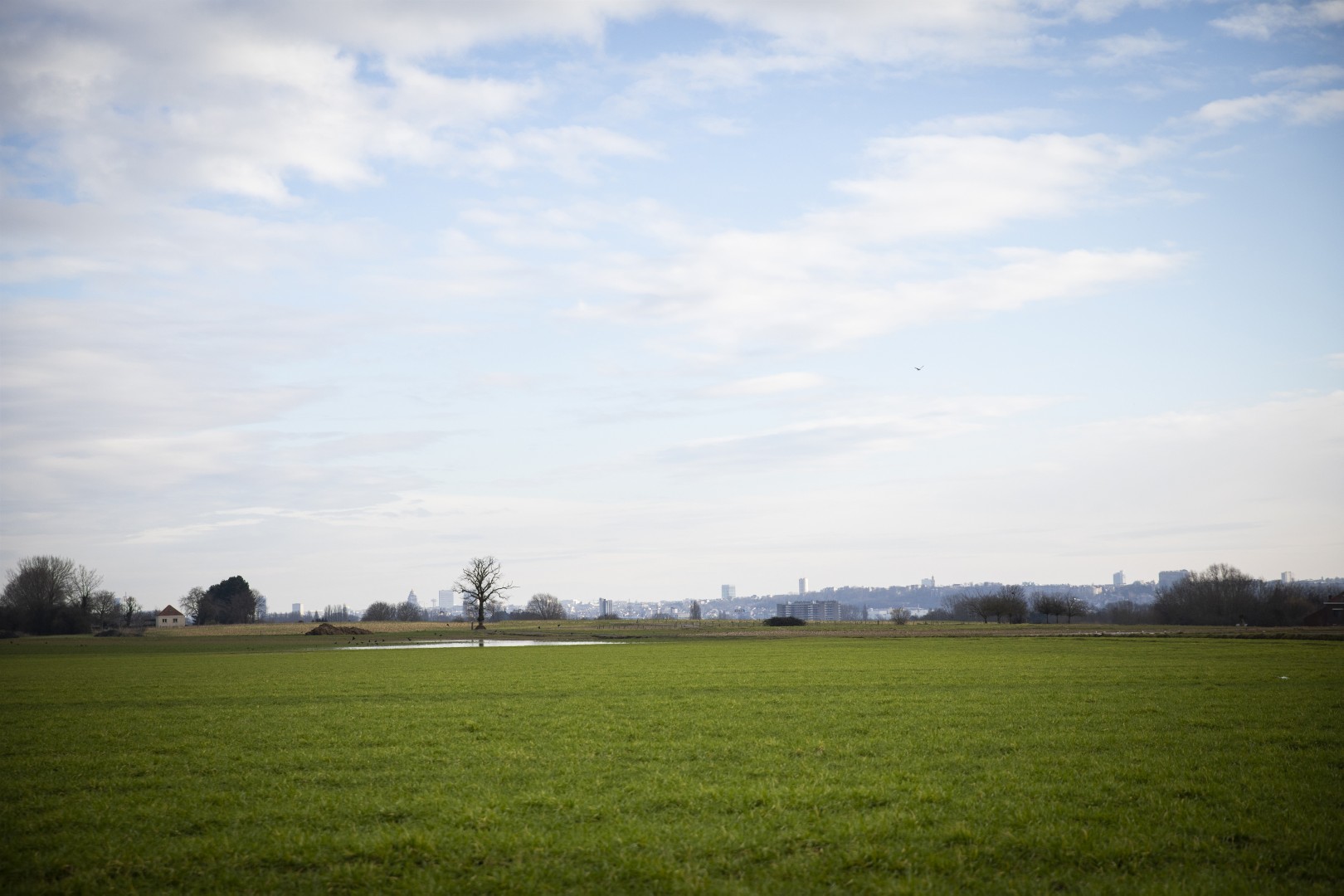 We fietsen verder richting Sint-Pieters-Leeuw en passeren oude hoeves. Vlak naast de dorpskern ligt een groene parel: natuurgebied de Zuunbeekvallei. We trekken de remmen aan en genieten van de natuur en de meanderende beek. Een reiger kijkt ons nieuwsgierig aan. We installeren ons even in de vogelkijkhut en spotten nog tal van andere vogels. Aan de rotonde in Vlezenbeek, vraagt Dirk me of ik de lindeboom herken. Het is de Witse-boom, uit de begingeneriek van de populaire Vlaamse televisieserie Witse. ‘De boom is een toeristische attractie geworden voor de regio. In 2010 werd die samen met de omgeving trouwens beschermd als monument omwille van zijn artistieke, sociaal-culturele, historische en volkskundige waarde’, vertelt hij. Van hieruit hebben we een prachtig zicht op Brussel die glinstert in de winterzon.