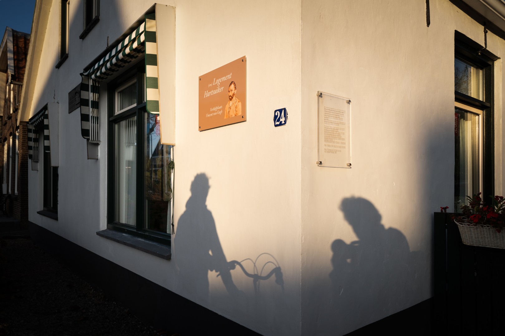 Bij het station van Hoogeveen treft Van Gogh in 1883 Albert Hartsuiker, een spoorwegbeambte met ‘een gezicht als rode kool’. Aan de Toldijk, op enkele minuten wandelen van het station, verhuurt Hartsuiker kamers. Voor een gulden per nacht geeft hij Van Gogh een hoek op de ruime zolder. De Toldijk heet nu de Pesserstraat, maar het gebouw staat er nog. Sinds 2022 is het flink verbouwde logement opnieuw open voor gasten, de bebaarde tronie van de meest beroemde gast prijkt op de gevel. Al betaal je nu net iets meer dan Van Gogh destijds.