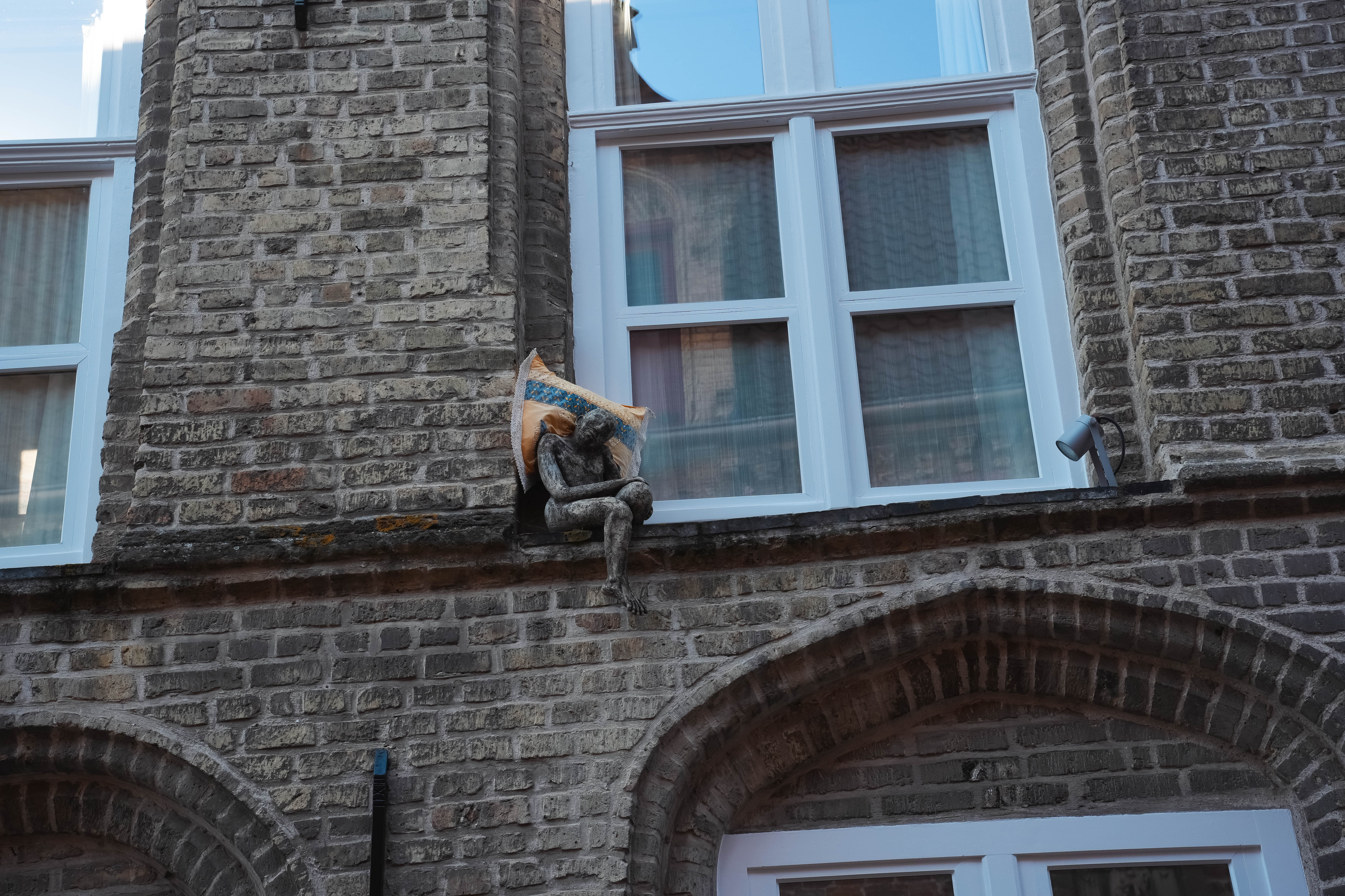 Terug in Nieuwpoort maken we nog een ommetje door het centrum via een deel van de officiële stadswandelroute, die ons met markeringen op de grond langs verschillende historische plekken voert.  We starten vlak bij de (gratis) parking op de Kaai aan de Vismijn, in het hart van wat ooit de economische motor van de stad was. Aan de kade ligt de Surcouf, een gerestaureerd vissersvaartuig dat herinnert aan de garnaalvangst van weleer. Wat verderop staat het Vissersmonument, een levensgroot beeld als blijvend eerbetoon aan de vele Belgische vissers die hun leven lieten op zee. Nieuwpoort ademt nog steeds visserij: we ontdekken dat oktober hier in het teken staat van de grijze garnaal, met verschillende proeverijen en activiteiten rond duurzame visvangst. Verder op de stadswandeling passeren we langs de zogenaamde Duvetorre, een ruïne van de voormalige Sint Laurentiuskerk uit 1281 die tijdens WOI als observatiepost diende en bijna volledig vernield werd. Vlak daarnaast staat het Bommevrij, een voormalig kruitmagazijn uit 1820 en één van de weinige gebouwen in de stad die de bombardementen van de oorlog ongeschonden doorstond. Terwijl we door de straten wandelen, vallen de huizen uit de jaren twintig in het bijzonder op. Hun kenmerkende gevels vormen stille getuigen van de wederopbouw na de verwoestingen van de Eerste Wereldoorlog.