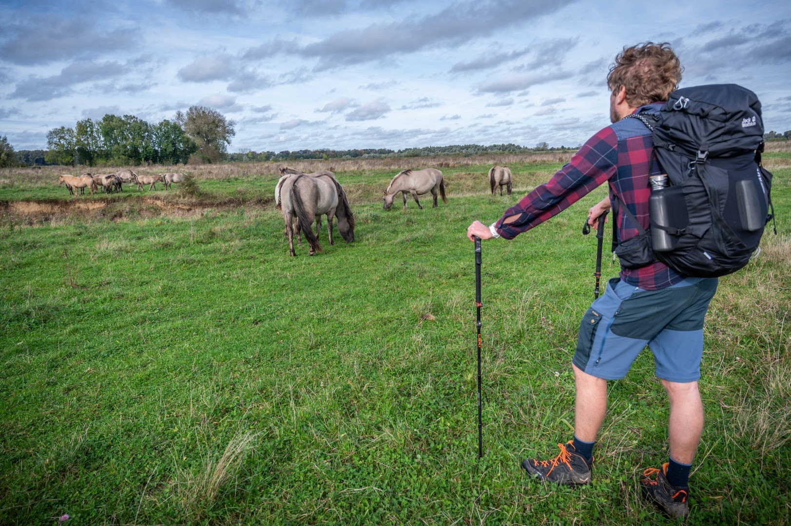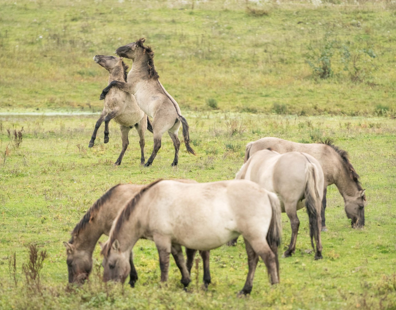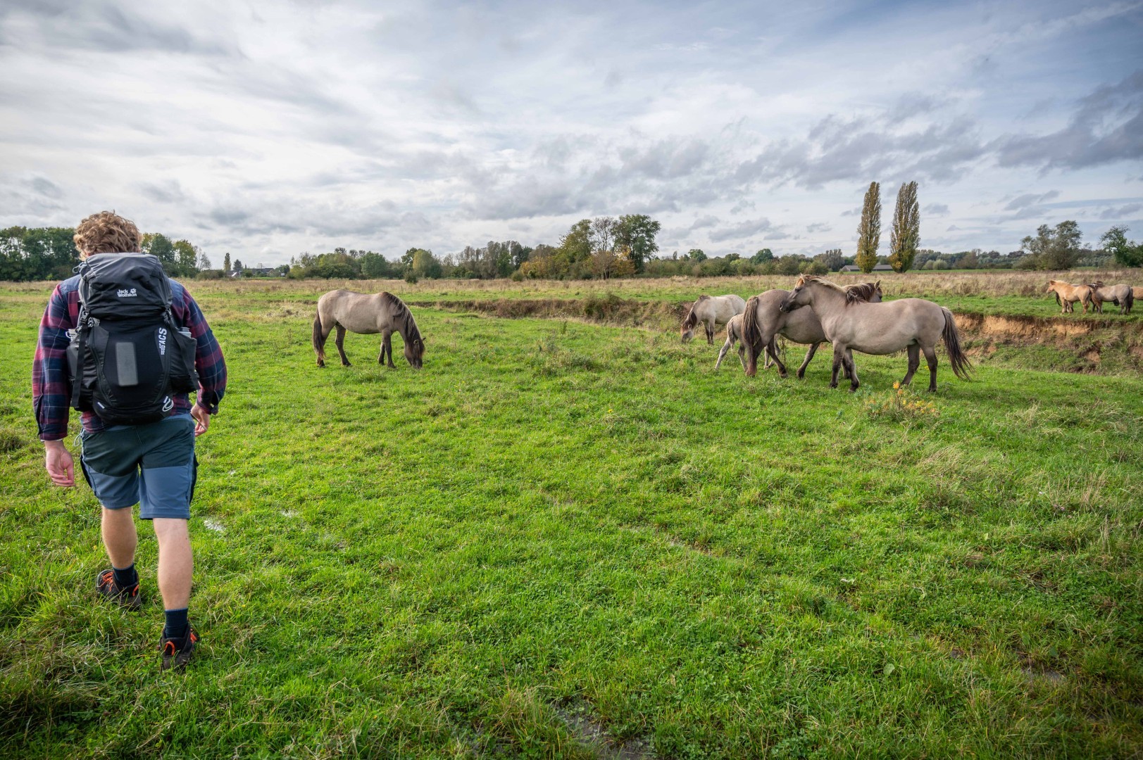 Verderop grazen konikpaarden en gallowayrunderen. Met hun vraatgedrag houden ze het landschap halfopen. Reeën schuilen tussen de kudde voor wolven, putters en dwergmuizen pikken zaden uit de ruigte, en kauwen plukken winterhaar voor hun nest. Zelfs hun mest speelt een rol - zonder ontwormingsmiddelen wemelt het er van de larven, wormen en kevers. Gevolg: een rijk bodemleven. Zonder deze grazers geen stekelige broedstruiken voor zwartkoppen, geen kuilen vol pioniersplanten, geen brede bosranden waarin grauwe klauwieren jagen. Het zijn de architecten van de Maasvallei, de onbezongen helden van een landschap in beweging.