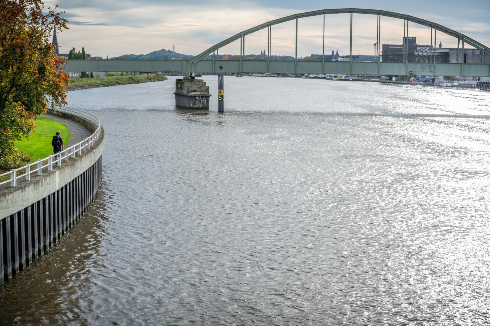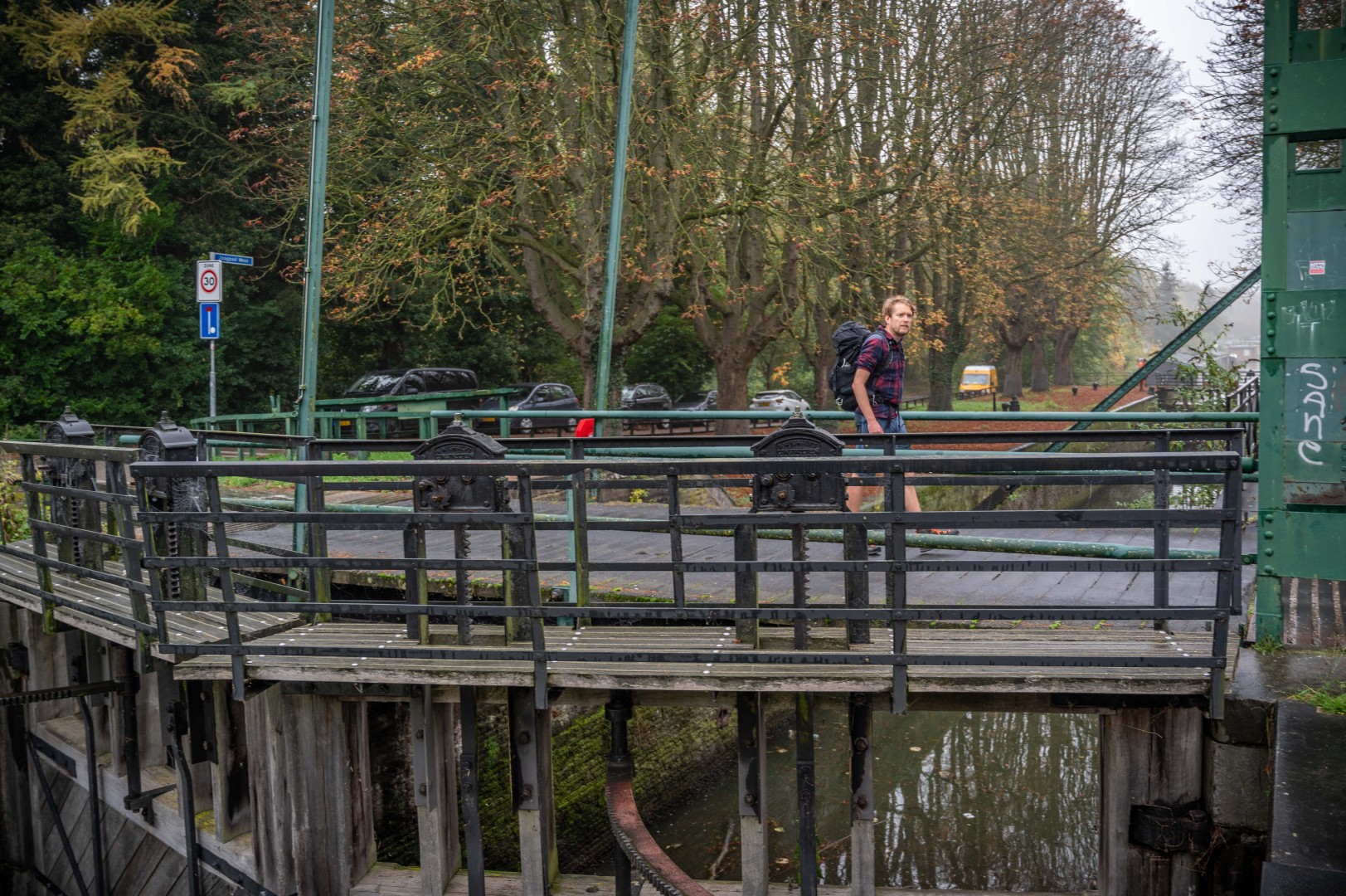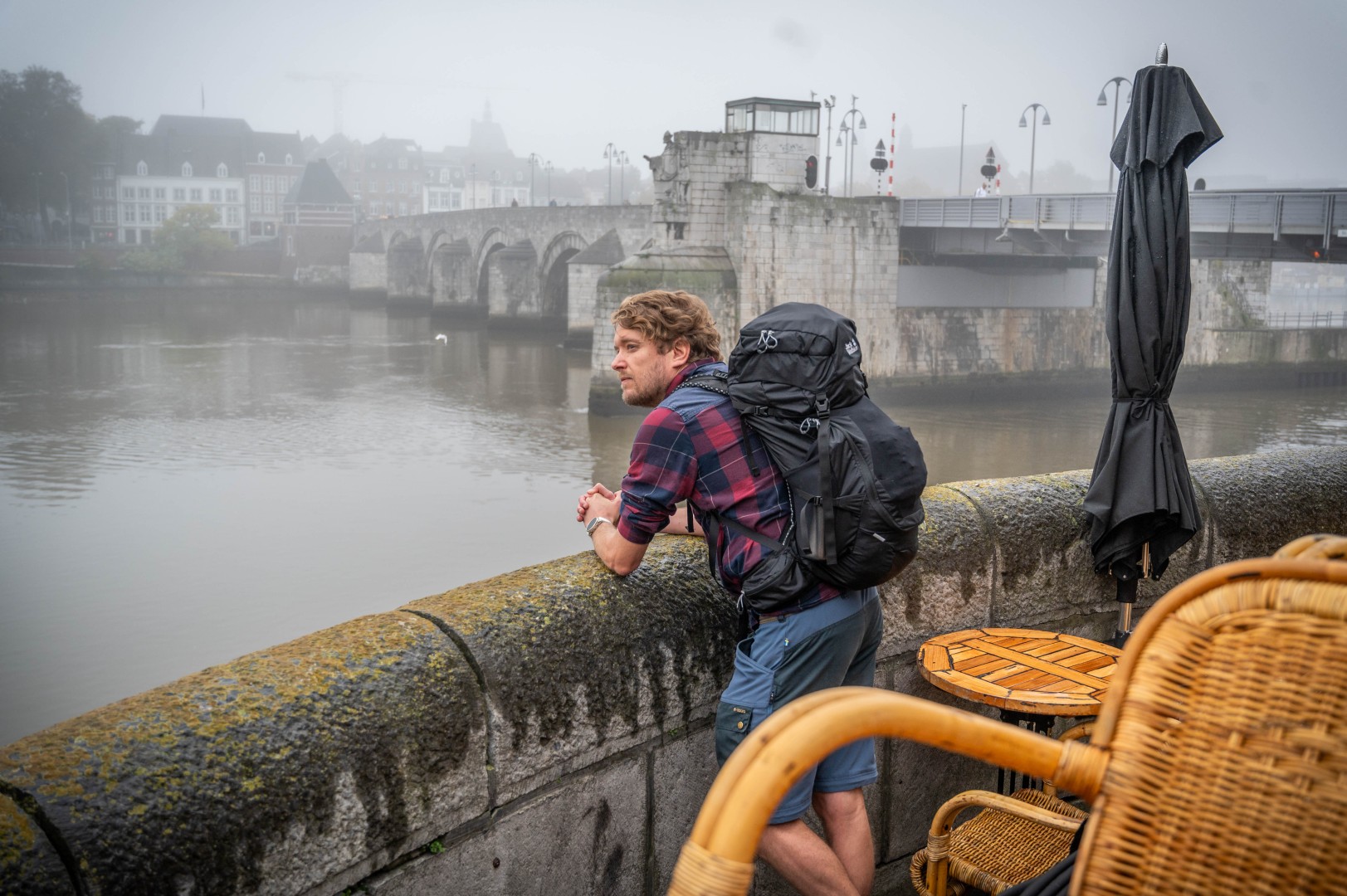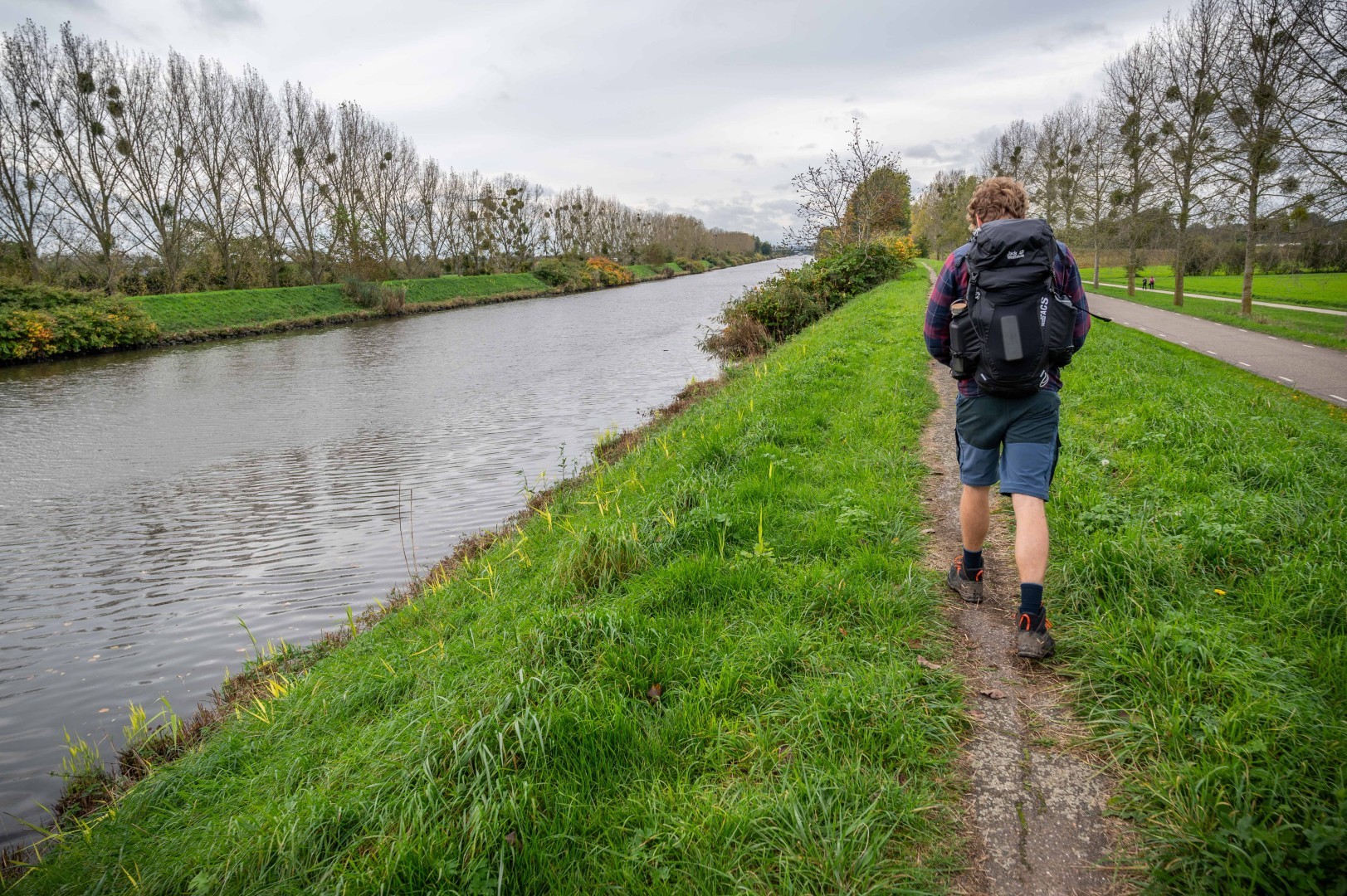 De stad eindigt abrupt. Op het ene moment omringt het vrolijk gekakel van de markt ons, bij het volgende heerst er stilte. Aan een havenbassin droogt een aalscholver zijn vleugels, een voorbode voor hetgeen wij exact negen uur en 28 kilometer verderop zullen doen met onze wandelschoenen. Maar we lopen vooruit op de feiten. Het duurt een tijdje vooraleer we onze tocht op de Maas kunnen kalibreren, die verloren we aan de Sint-Servaasbrug uit het oog. Eerst navigeren we voorbij een kluwen aan kanaaltjes en vaarten, waar woonboten schijnbaar al decennia geen centimeter van plaats bewogen. We wandelen langs een oude spoorbedding, waar bij mooier weer hagedissen zonnen, daarna over de in herfstblaadjes uitgedoste kaaien van de Zuid-Willemsvaart.