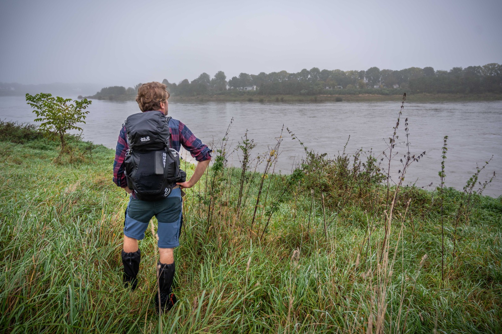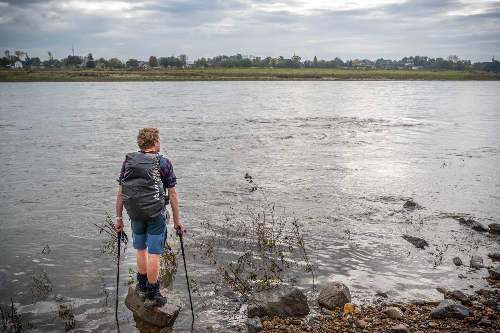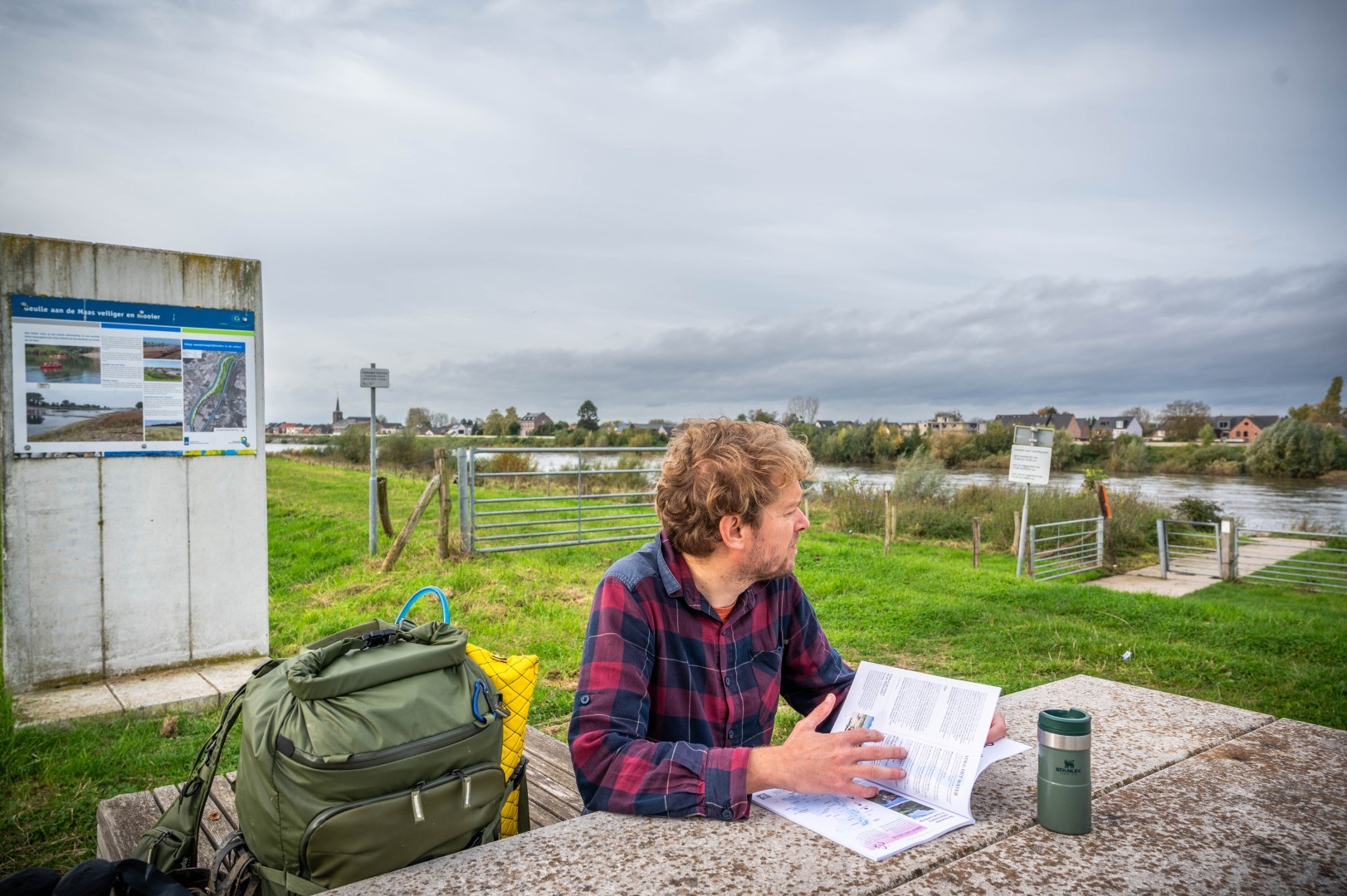 En ineens, na ruim zes kilometer stappen, is de Maas daar weer. In al haar panoramische glorie kabbelt ze voorbij. Schijn bedriegt. Verderop speuren drie Kroaten op de oevers naar hun vermiste collega. Die verdween een week eerder tijdens het nachtvissen, zijn boot werd vijftig kilometer verderop teruggevonden. Het is een pijnlijke herinnering aan de oerkracht van de Maas. De verdwijning is tijdens onze wandeling overal een gespreksonderwerp. Elke local heeft een mening over en denkt, op basis van heersende stromingen, te weten waar de rivier de man zou kunnen uitspuwen. Een voor een erkennen ze de macht van de Maas. Net zoals kustbewoners slechts met veel schroom zwemmen in de verraderlijke Noordzee, weten alle Maaslanders tot wat hun rivier in staat is.