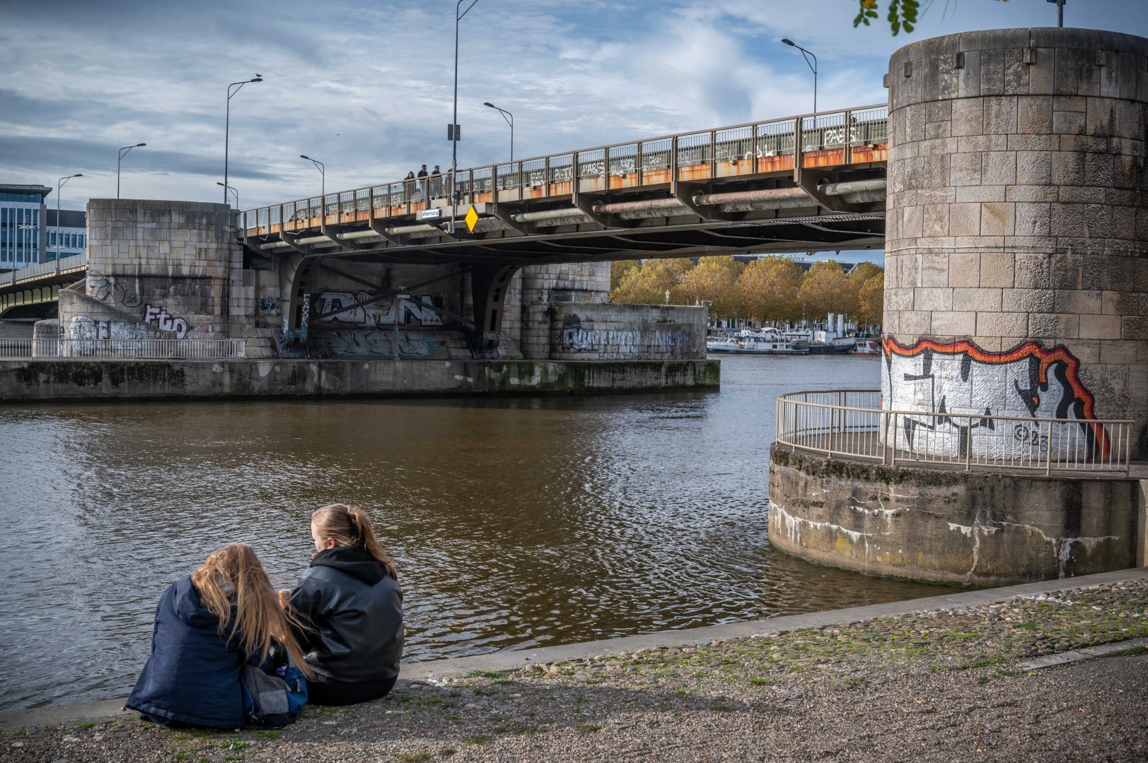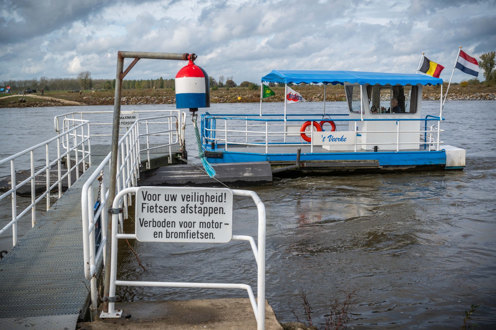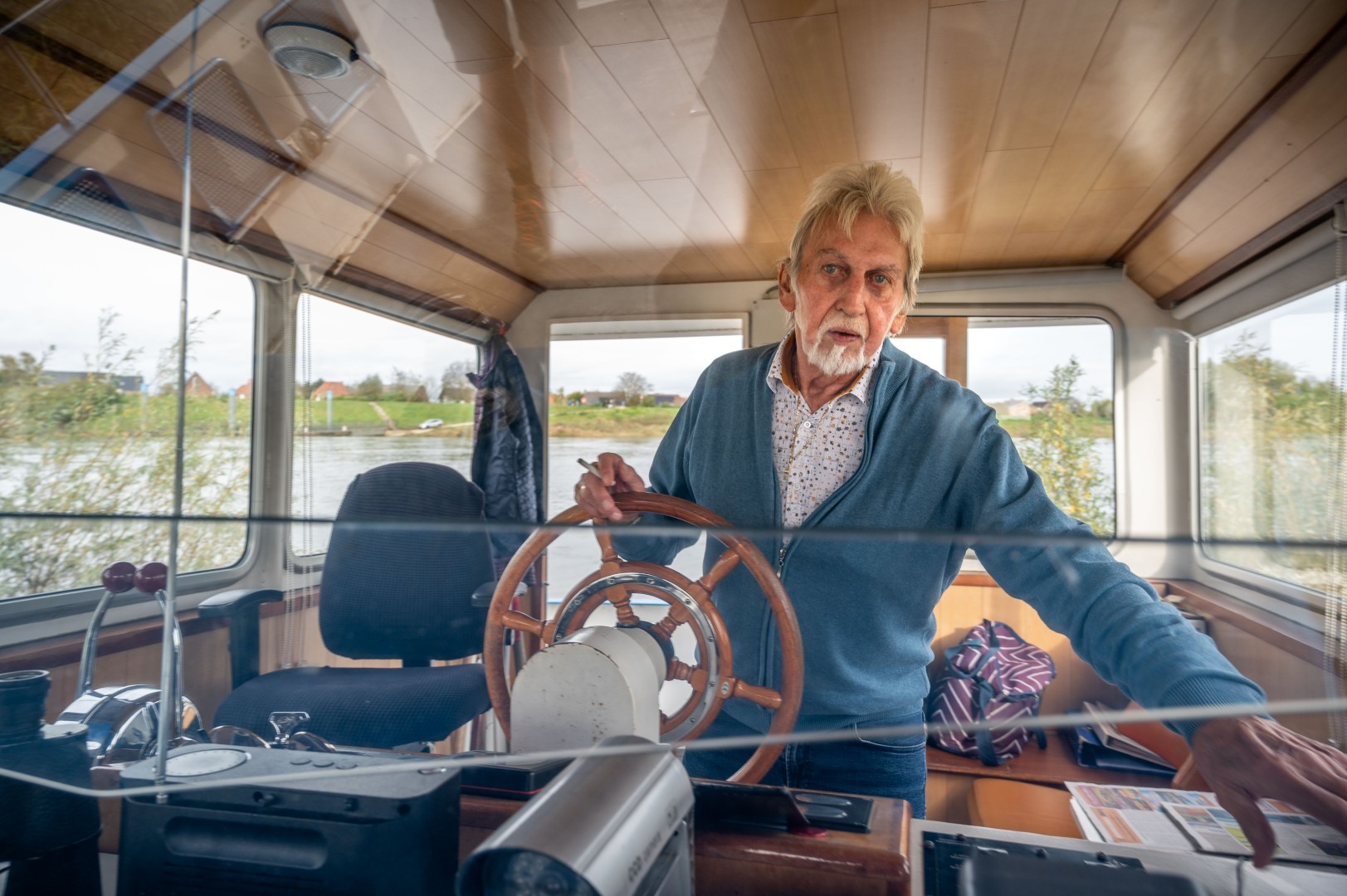 We moeten niet aan de overkant zijn, maar schepen voor het plezier toch in voor een retourtje met het veerpont. Veerman Frans is een figuur uit een stripverhaal: gouden ketting rond de hals, sigaretje in een mondhoek, stuurse blik. Zeebonken lachen niet. Gelukkig is Frans iets spraakzamer dan zijn collega van een dag eerder. Hij doet dit al tien jaar, voordien werkte hij op een écht schip - net als zijn vader en z’n grootvader. ‘Rustgevend is dat water wel, maar niet als je op een dag duizend mensen moet overzetten’, gromt hij. Bij hoog water varen de veren niet uit, vertelt hij. Niet zozeer omwille van het gevaar op het water - Frans is het ruime sop gewoon. Wel omdat de aanlegsteigers op de oevers dan onder water komen te staan.