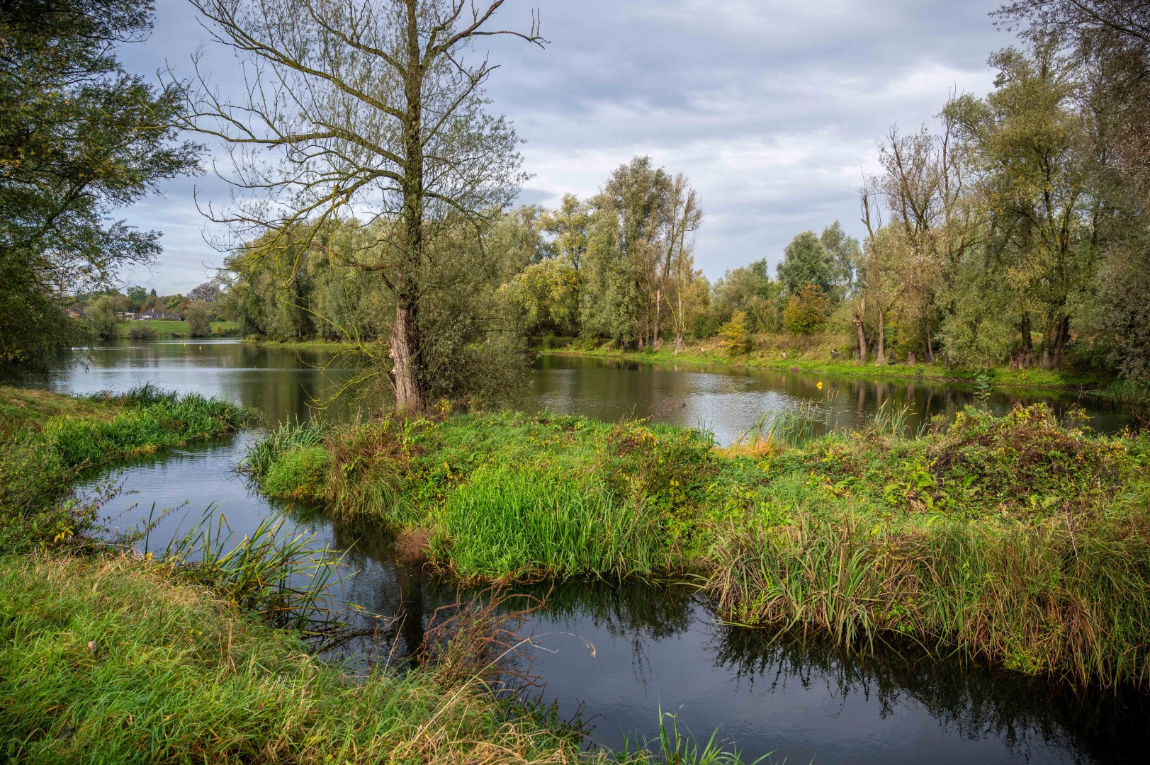 Bij het uitwandelen van Oud-Urmond verjaagt een ekster een kerkuil, ze fladderen tuimelend door het gebladerte. Boven de akkers hangt een veldleeuwerik, op de oevers groeien struiken met herfstige geelzucht. We stappen door een landschap van knotwilgen en stegelkes - zo noemen de Nederlandse Limburgers doordraaihekjes. In elk café valt een driehoek vlaai te scoren.