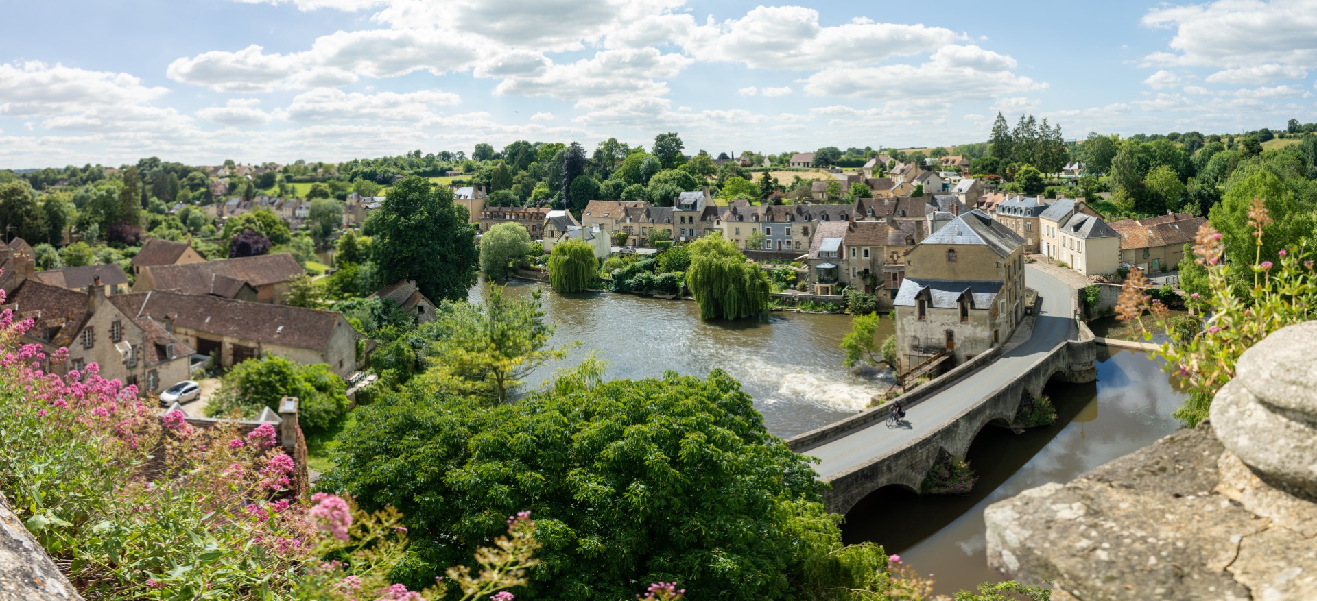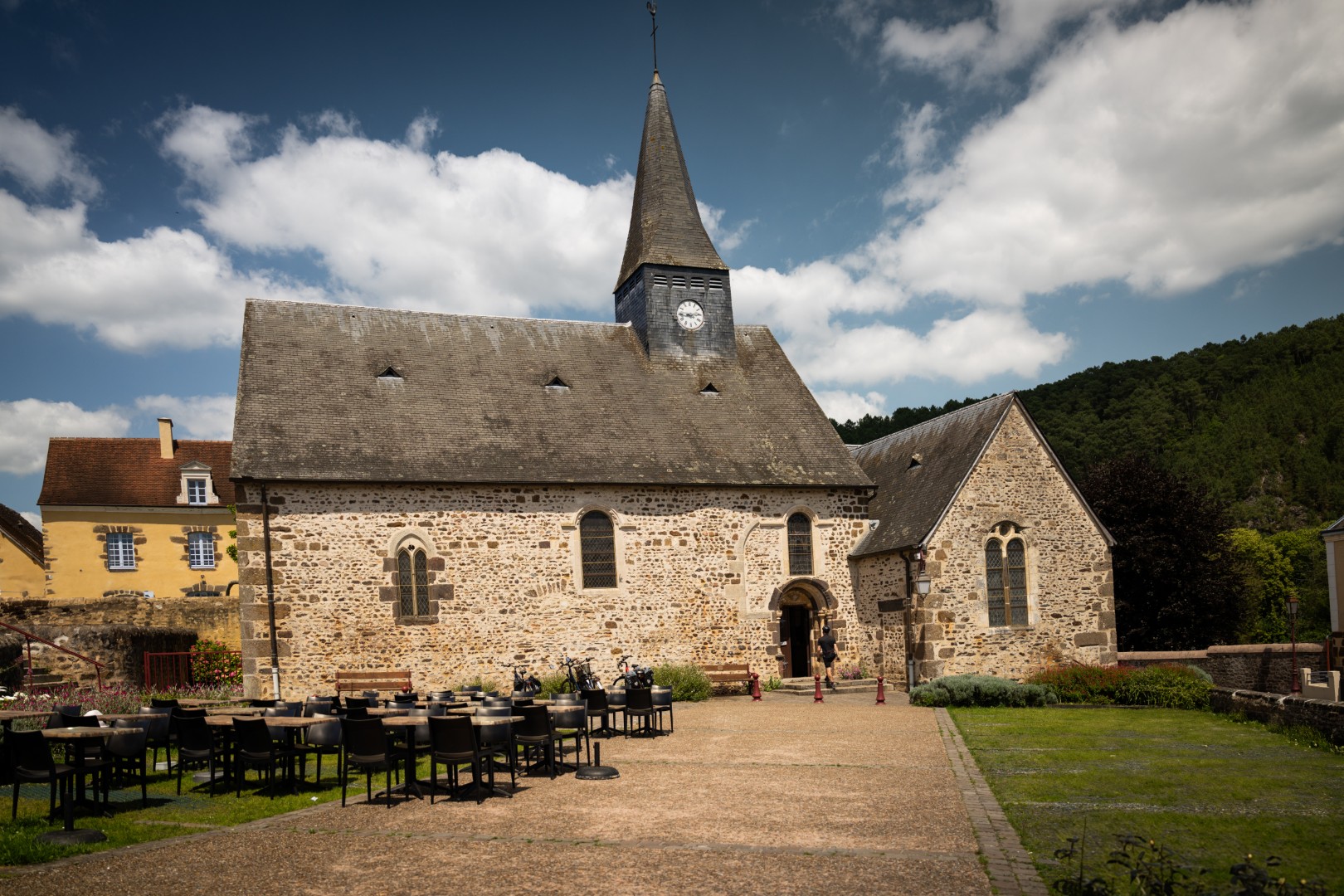 Ongeveer tien kilometer buiten Alençon beginnen de groene puisten in het landschap zich te ontpoppen tot stevige heuvels. Cénéri, een Italiaanse kluizenaar die hier in de zevende eeuw rondstruinde, doopte de streek met veel zin voor overdrijving de Alpes Mancelles. In een meander van de Sarthe nestelt zich het dorpje dat zijn naam draagt. In Saint-Cénéri-le-Gérei, ‘un des plus Beaux villages de France’, vind je meer horeca dan twintig kilometer in de omtrek. Wat mooi uitkomt: ik lust wel een pittoresk slaatje met gerookte ham en geitenkaas, tegen een achtergrond van frisse klimop, vers geschilderde klapluiken en rustieke dakpannen.