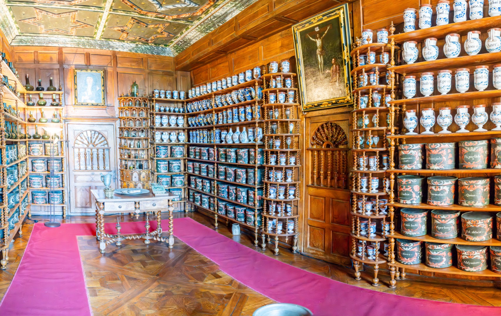 Voorbij La Flèche rijden we ruim dertig kilometer door een groene tunnel. Eerst trekt de voie verte een rechte lijn door het Forêt du Pugle. Wildroosters en omheiningen bakenen een jachtdomein af, waar je doorheen mag fietsen. Ook buiten het woud is de route ingekapseld door bomen en struiken. Tussen het gebladerte vang ik soms een glimp van een kerkdorp of kasteel op. In Baugé-en-Anjou bezoeken we het Hôtel-Dieu, waar zusters zieken verzorgden. Ze hielden de apotheek uit 1675 in gebruik tot de Tweede Wereldoorlog en lieten ze daarna onaangeroerd. Alle kruiken en flacons staan nog netjes in de rekken, zelfs met medicijnen erin.