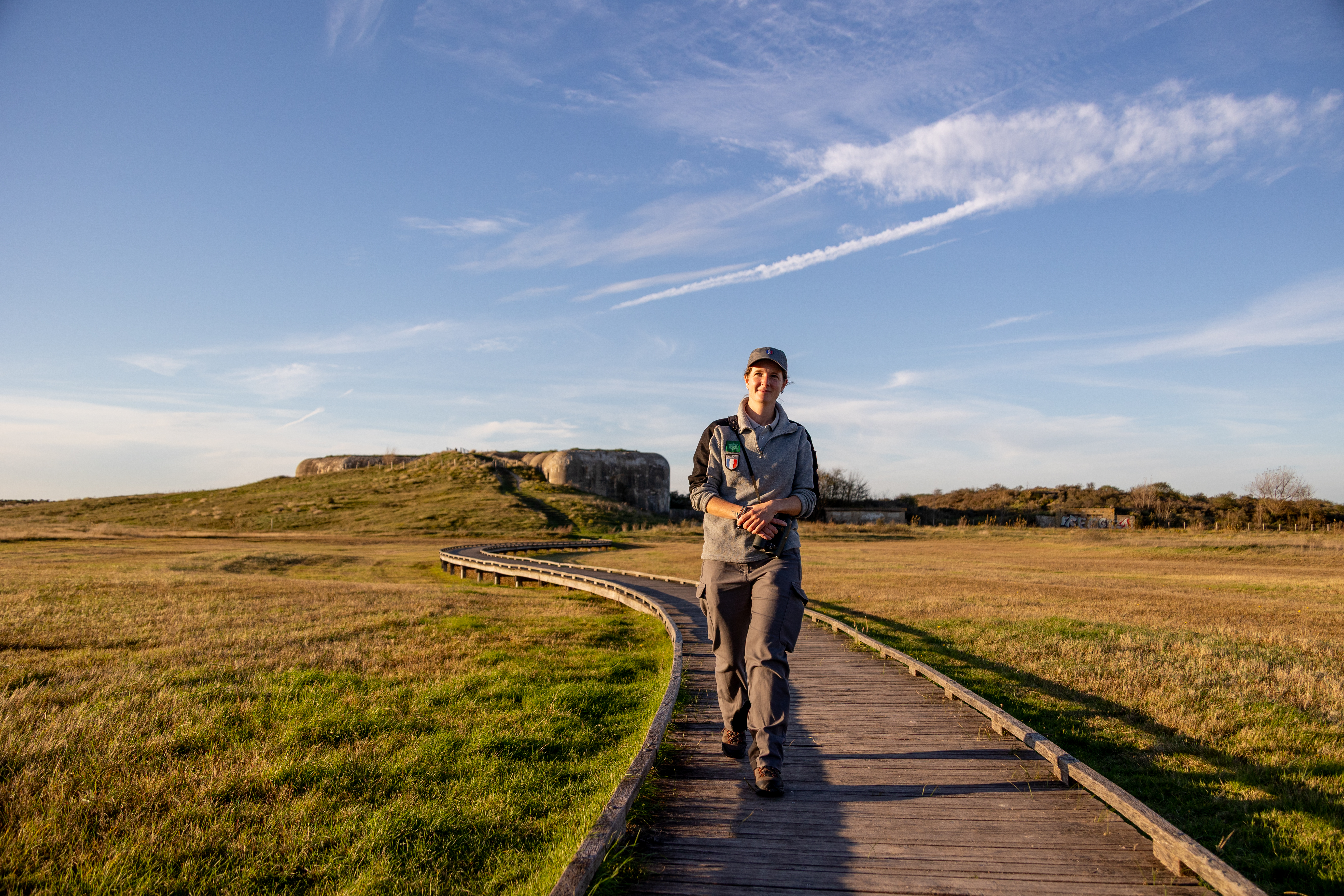 Voor we opnieuw neerstrijken in de plekken waar de oorlog zich in het landschap heeft vastgebeten, zoeken we eerst de meest open rust die de streek te bieden heeft. In Saint-Quentin-en-Tourmont, aan de rand van Parc du Marquenterre, wordt de wereld opnieuw stil. Geen namen in steen, geen data die wegen. Alleen duinen, rietvelden en een lucht die laag en breed boven alles ligt. Aan het Maison du Parc du Marquenterre ontmoeten we Hugues Delhaye. Hij beweegt door het gebied met korte, precieze observaties, alsof hij voortdurend op signalen reageert die wij niet eens horen. Hij leidt ons naar een houten observatiepost waar onderzoekers zangvogels ringen. Het gebeurt snel en geconcentreerd: vangen, meten, wegen, registreren, vrijlaten. Een systeem dat even laat meekijken hoe de natuur haar eigen ritme behoudt. Hugues vertelt hoe dit landschap lange tijd door mensen gebruikt werd. Op de polders die in de jaren vijftig op de zee werden gewonnen, begon men tulpen te kweken. Het was landbouw, maar op een plaats die al gevoelig was voor het water. Toen de tulpenhandel tegenviel, werd het terrein langzaam omgevormd tot natuurpark en in 1973 officieel geopend. Het park is sindsdien uitgegroeid tot een toevluchtsoord voor trekvogels die elders nauwelijks veilige grond vinden.