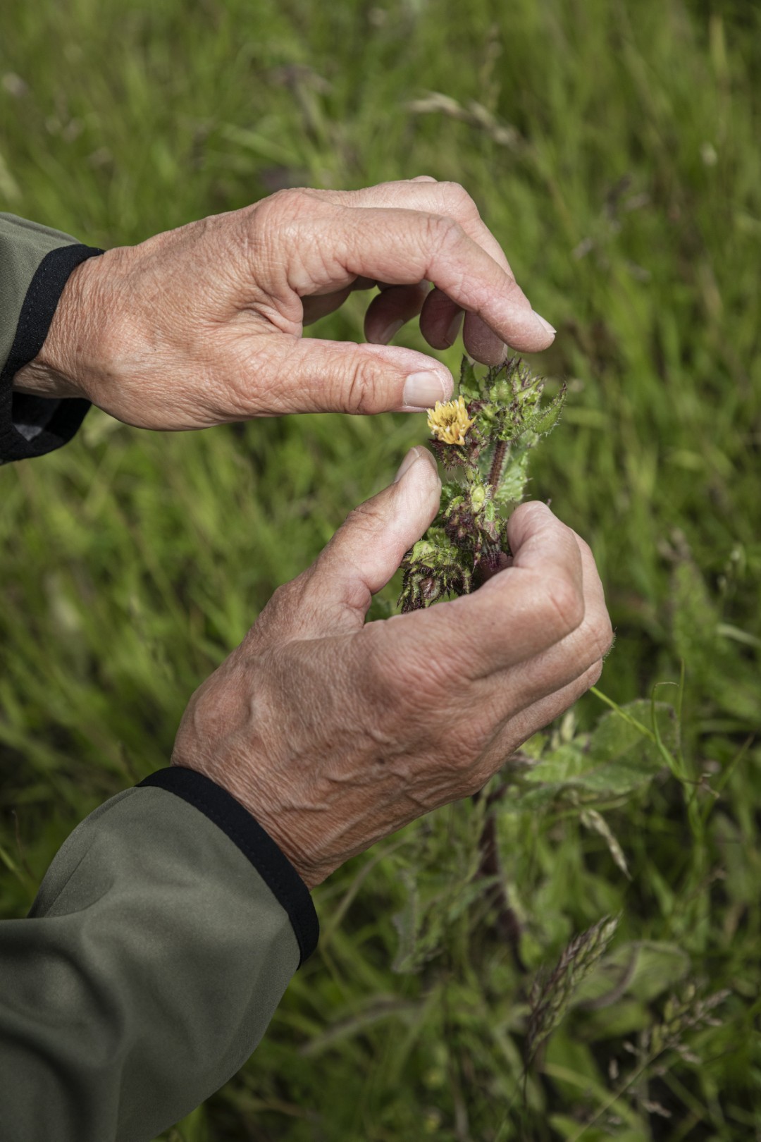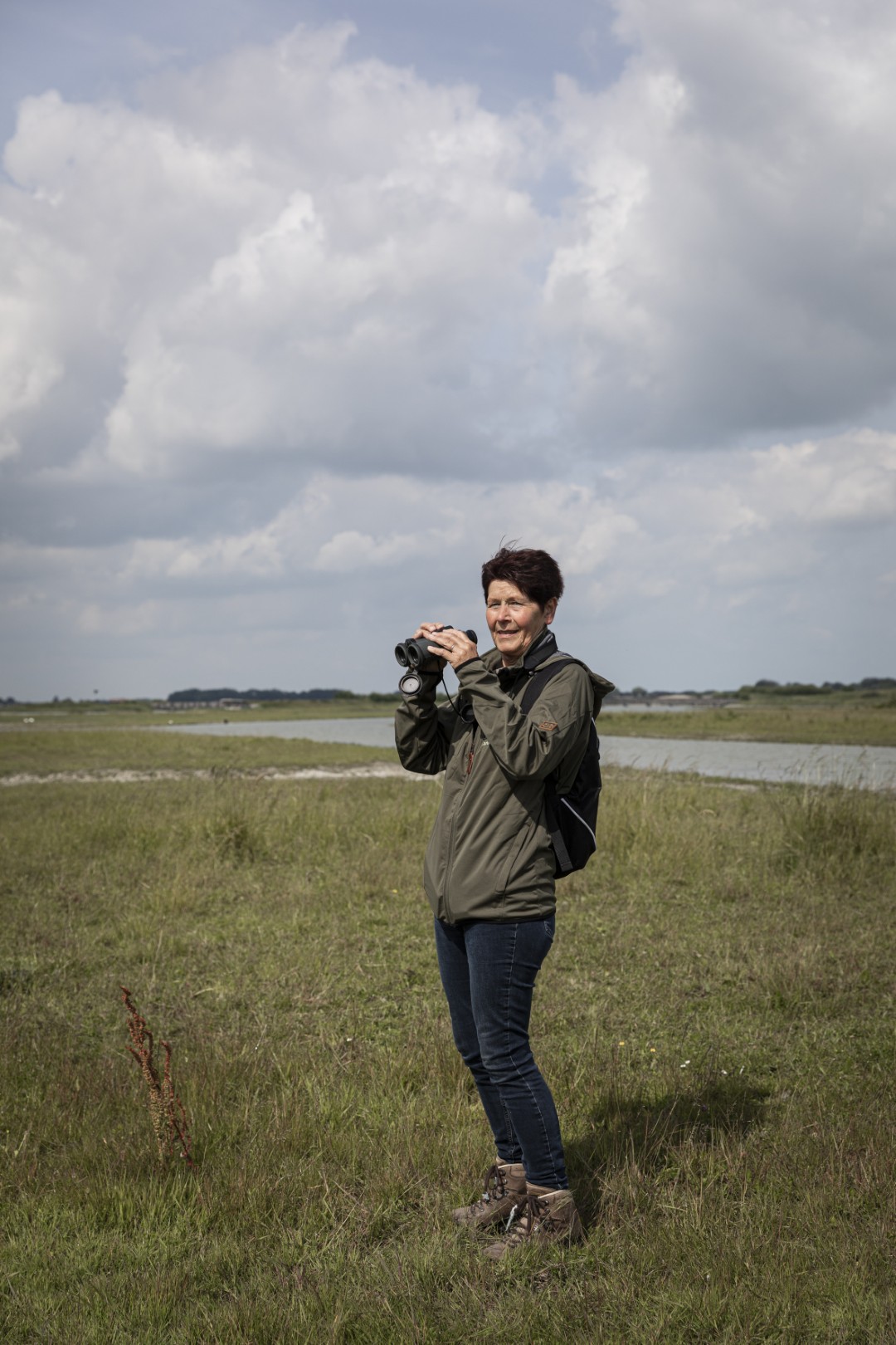 Dilia verhuisde jaren geleden van het bosrijke Brabant naar Zeeuws-Vlaanderen en vond het landschap in haar nieuwe woonplaats eerst leeg en kaal. Haar liefde voor de natuur leerde haar aandachtig kijken. De Waterdunen verbergen hun schoonheid in het volle zicht. Runderen begrazen het gebied om de biotopen in stand te houden. De vegetatie op de eilandjes wordt geregeld gewied. Deze natuur vergt onderhoud. Maar dat doet geen afbreuk aan de pracht. Die schuilt in details die ik als stadsrandmens niet zou opmerken. Gelukkig is er Dilia. Ze toont me een bijenorchis: het bloempje, dat op schrale grond groeit, imiteert een bij. De rode graslatyrus is te klein om scherp in beeld te krijgen met je telefoon. De vuurrode jakobsvlinder fladdert naar het sint-jakobskruid om eitjes af te zetten. Ons wandelritme vertraagt, want er is steeds meer te zien. In een weids, open landschap moet je niet in hectaren denken. De vierkante meter telt.