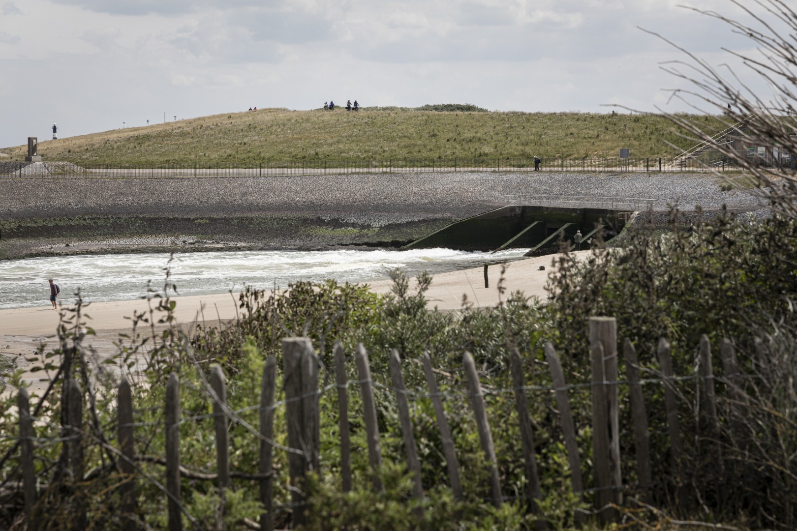 Eigenlijk vertegenwoordigen de Waterdunen de actuele visie op de Deltawerken. De dijk blokkeert de zee niet, maar laat ze gecontroleerd het land instromen. De getijdenduiker, een slimme inwateringssluis naast de gietijzeren vuurtoren van Breskens, maakt dat mogelijk. In een gebied van 350 hectare tussen een camping en een vakantiepark is op vijf jaar tijd verrassend wilde natuur ontstaan. ‘Alles wat je in zee vindt, vind je hier ook’, zegt Dilia, terwijl ze een krabbenschildje opraapt.