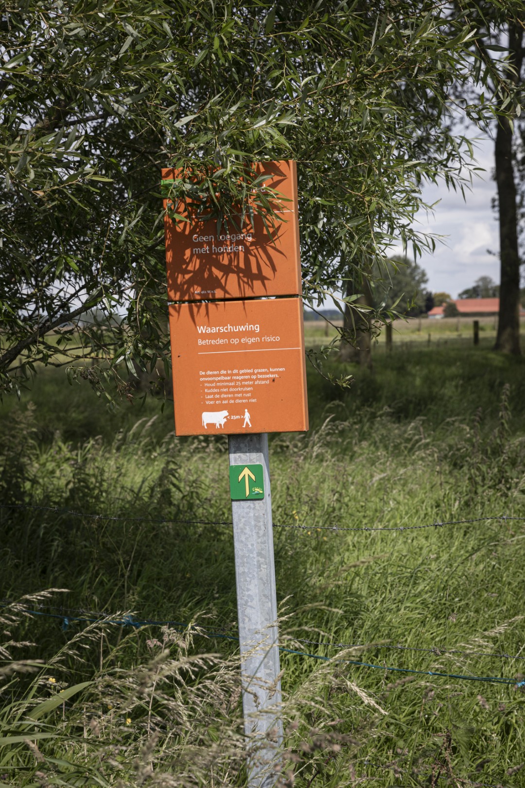 Ik logeer in de bed & breakfast en word om half zes wakker door het eerste daglicht. Ik sta op, ga naar buiten en verken het hele landgoed. Herenboer voor een dag, stadsrandmens met verkenningsdrang. Het hoge, bedauwde gras is zo nat dat wandelen op pootjebaden lijkt. Boven de kikkerpoel hangen nog nevelslierten. Adies koeien komen nieuwsgierig kijken. In de weide tegenover de bed & breakfast kan je kweekruggen zien. Boeren hoogden de grond op om water af te voeren. Op de droge ruggen schieten stekelige distels op, in de geulen glibber je over malse modder.