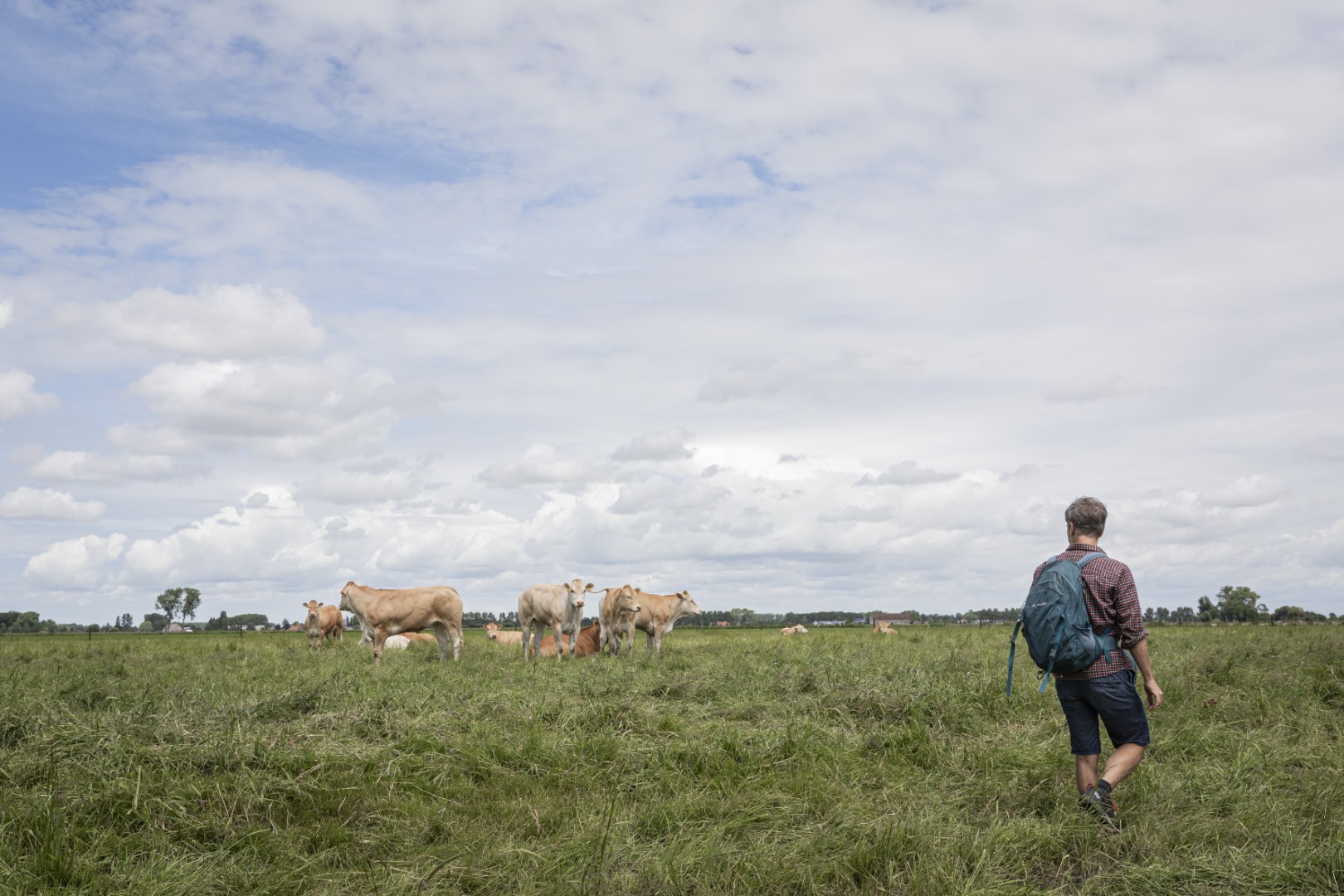 Na het ontbijt maak ik met fotografe Siska een ommetje van vijf kilometer naar De Blikken. ‘Leuk dat je hier met kinderen direct de natuur in kan,’ zegt ze. Voor kinderen die hier opgroeien, heeft de omgeving nadelen: hun vriendjes wonen niet in de buurt. Om de waterplassen van De Blikken te bereiken, moet je door een weiland. In de vogelkijkhut horen we koeien in de plas plonzen. Ze klinken als waterbuffels in de Pantanal, maar als ze in beeld komen, zijn het gewoon koeien van bij ons.