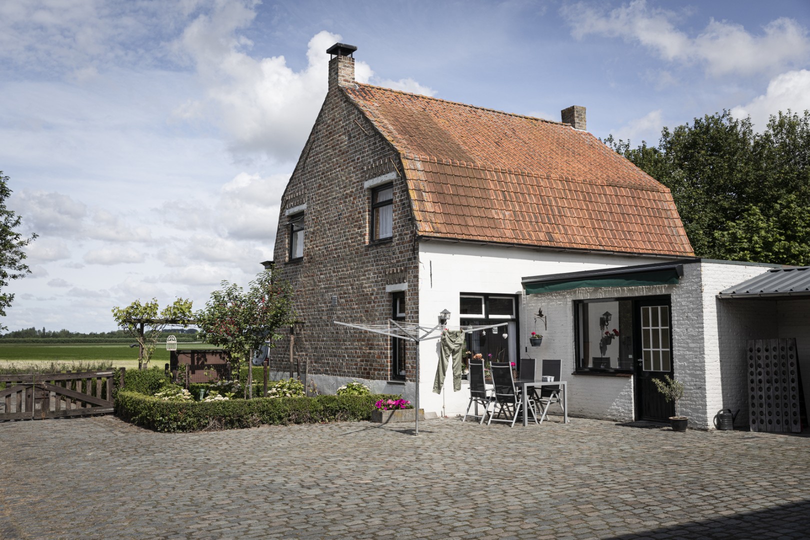 Het schattige boerderijtje van Ronald en zijn vrouw Diana verhoudt zich tot een wijnkasteel zoals een praline tot een suikertaart. De deur zit midden in de wit gesauste gevel, onder een rood mansardedak. Vier poortjes in de zijgevel gaven toegang tot de varkensstal. In de ontvangstruimte met de boerderijwinkel stonden vroeger acht koeien naast elkaar. De wijngaard bestrijkt met moeite een hectare. Passend bij de boerderij, piepklein in de weidse polders