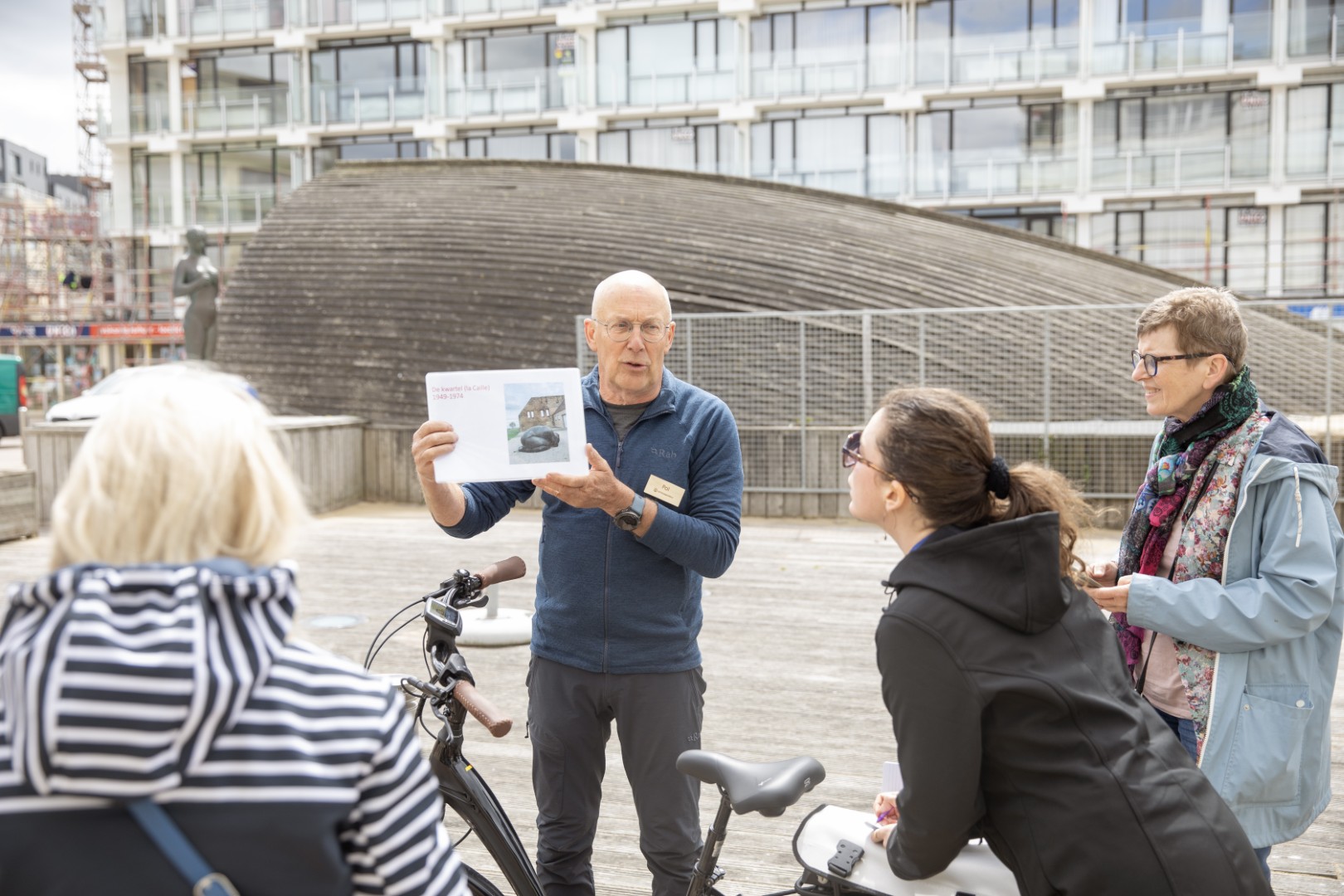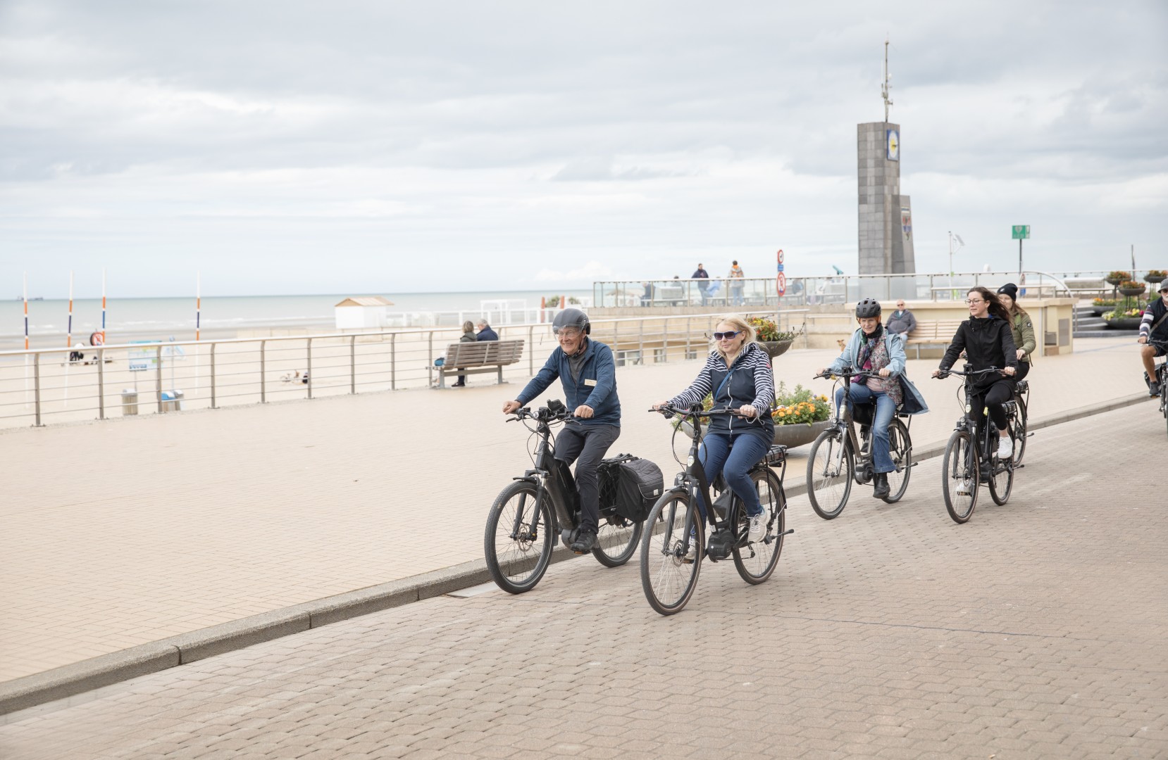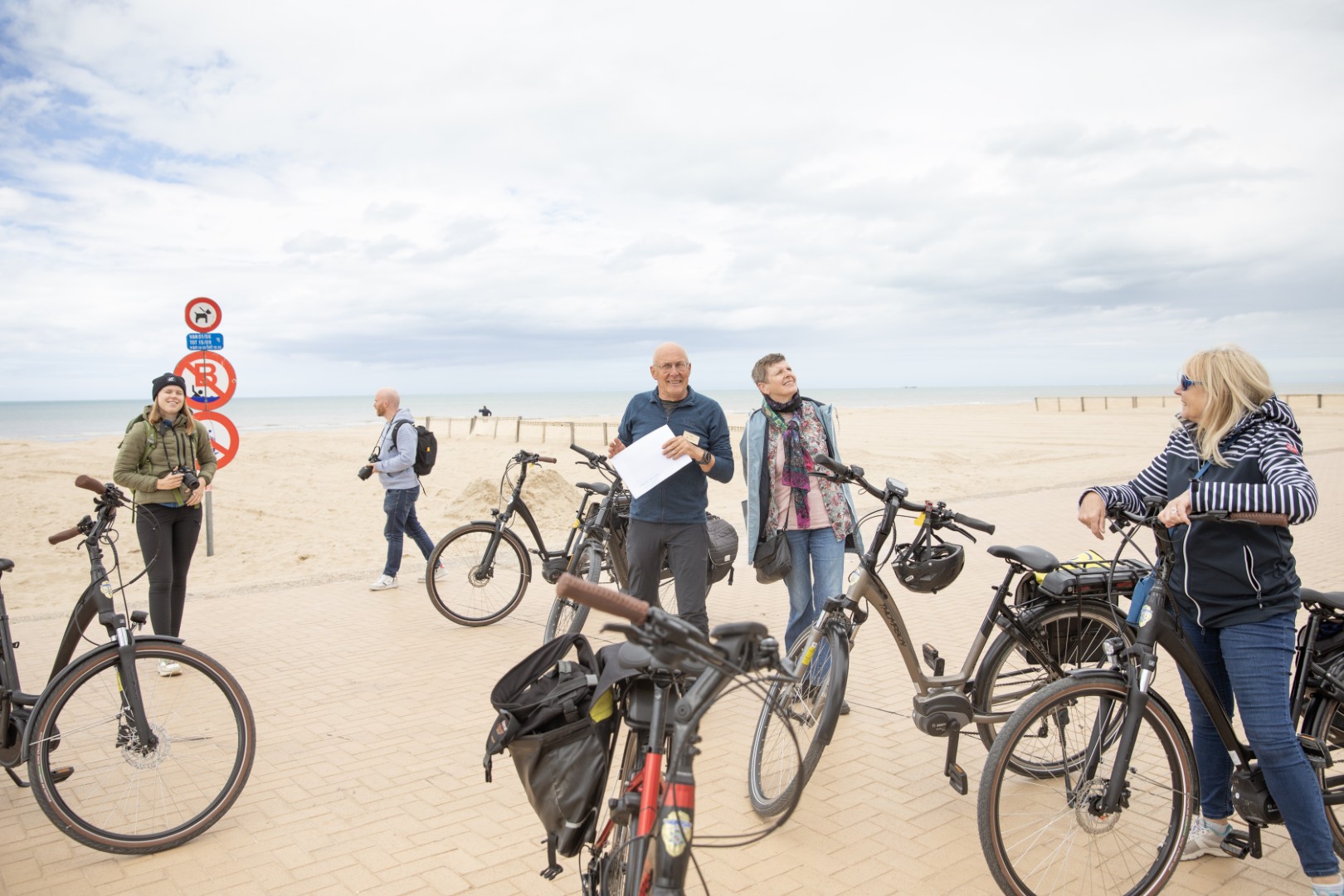Onze eerste activiteit wordt een fietstocht met als startpunt dé klok, het welbekende middelpunt van de Zeedijk. De Koksijde-gids Pol Cockaert staat ons al op te wachten. Hij is niet geboren en getogen aan de kust, maar strandde hier als jongeman en kent ondertussen niet alleen het huidige Koksijde op zijn duimpje, maar ook de geschiedenis van de badstad.