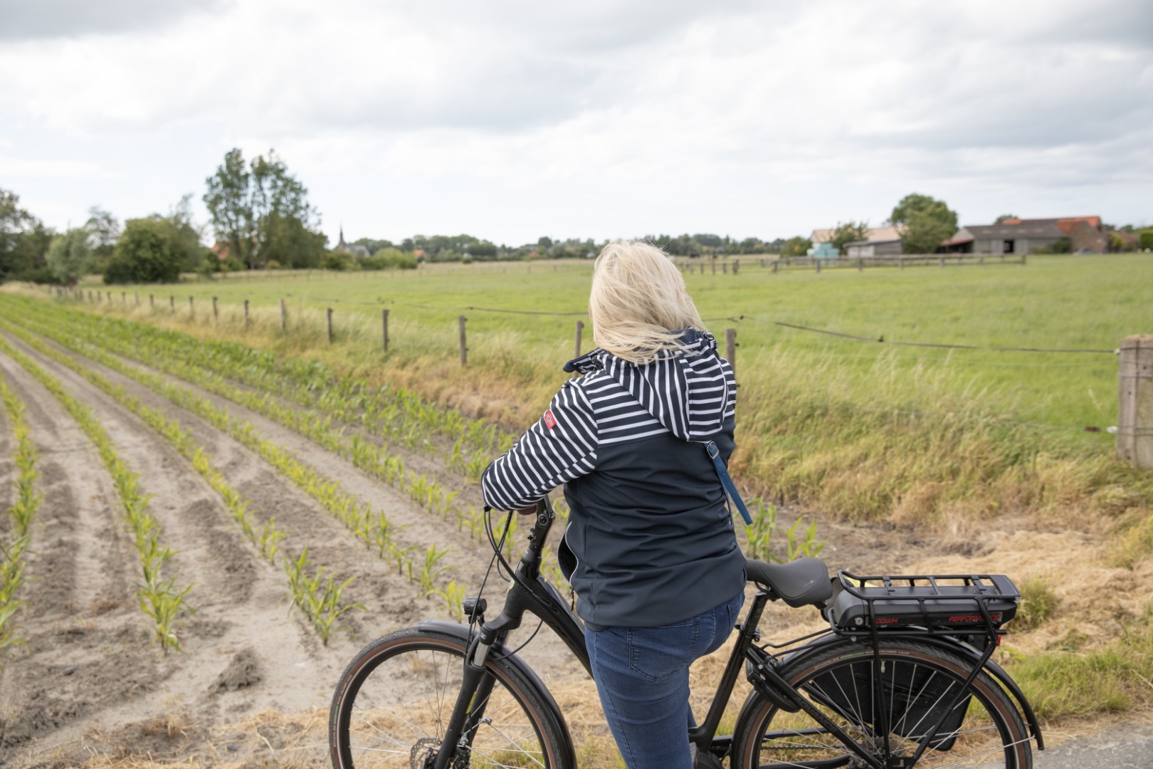 Opgeladen (figuurlijk) door een flinke portie kunst, duiken we het echte binnenland in, over de royale fietspaden. Koksijde timmerde de jongste jaren flink aan de (fiets)weg met de ambitie om dé fietsstad van de kust te worden. Nu al ligt er ongeveer 80 kilometer aan fietspaden, en er komen er elk jaar bij. Veel van die paden zijn extra breed, met een dubbele rijrichting. Bovendien werden veel ‘gewone’ wegen omgeturnd tot fietsstraten, waar fietsers voorrang krijgen. Ook poppen steeds meer fietsenstallingen, fietspompen en laadpunten op. Deel- en huurfietsen zijn overal beschikbaar. De prima elektrische exemplaren waarmee wij rijden, zijn trouwens gehuurd.