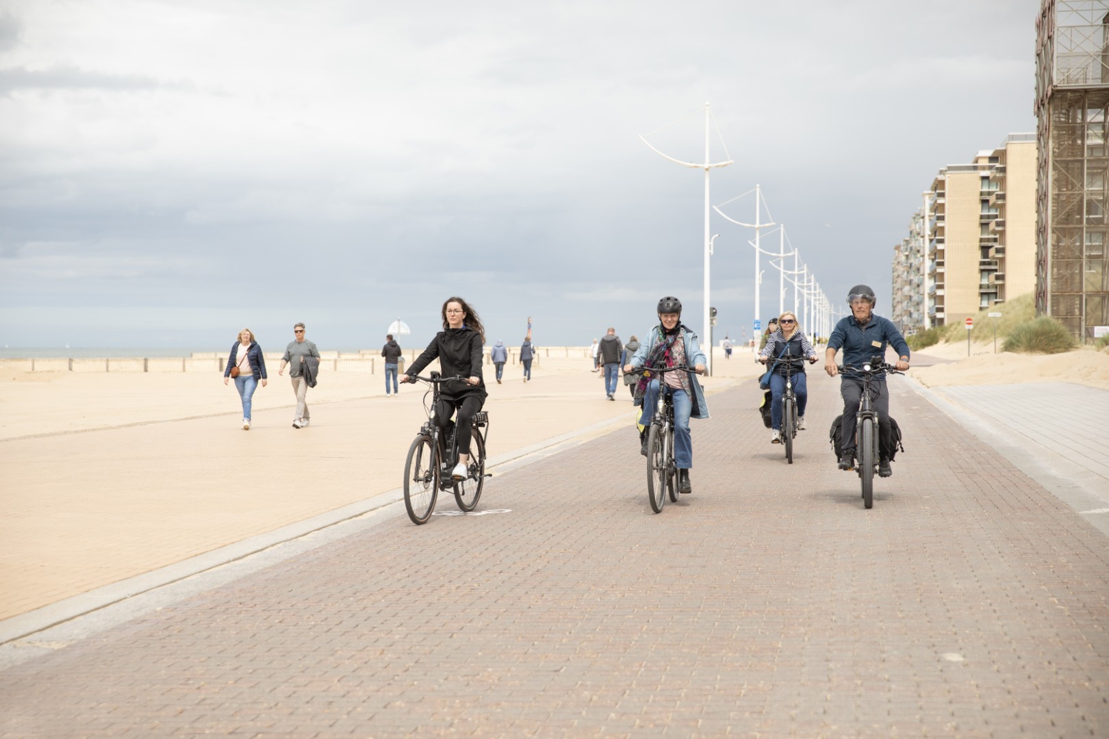 Het wordt stevig trappen om terug de Zeedijk te bereiken. We leveren onze gocarts in en ploffen neer bij een tafeltje met zicht op zee van restaurant The Tables. Bij een welverdiend aperitief genieten we volop van het uitzicht op de zee, het strand, en de vele gocarts, fietsers en skaters op de dijk.