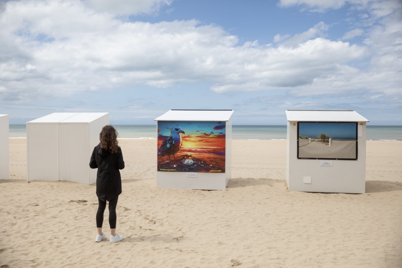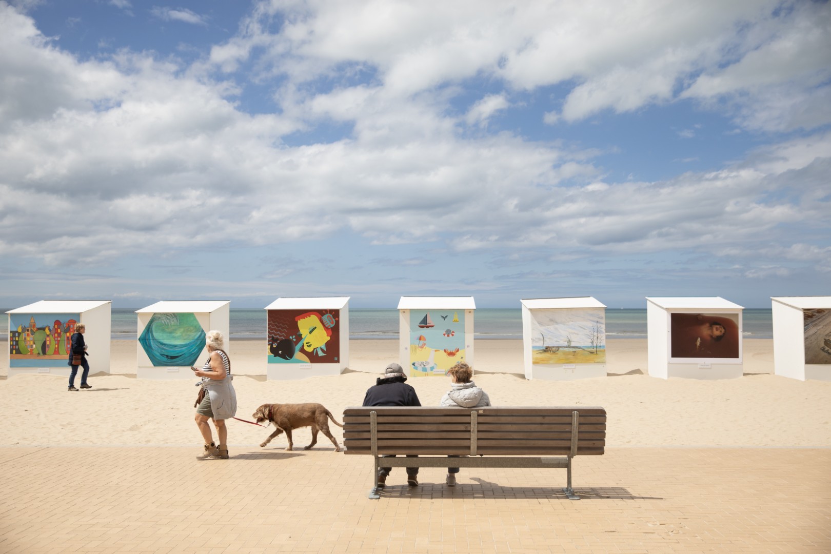 Wat verderop fietsen we voorbij een verrassend ándere expo. Cabin Art tovert de typische witte strandcabines van Sint-Idesbald om tot een zomerse, vrolijke openlucht-expo, elk jaar met een ander thema. Een twintigtal kunstenaars mag hun creativiteit botvieren op de achterkant van de strandcabines. Het kleurige resultaat boeit, in het decor van zand, zee en zon.