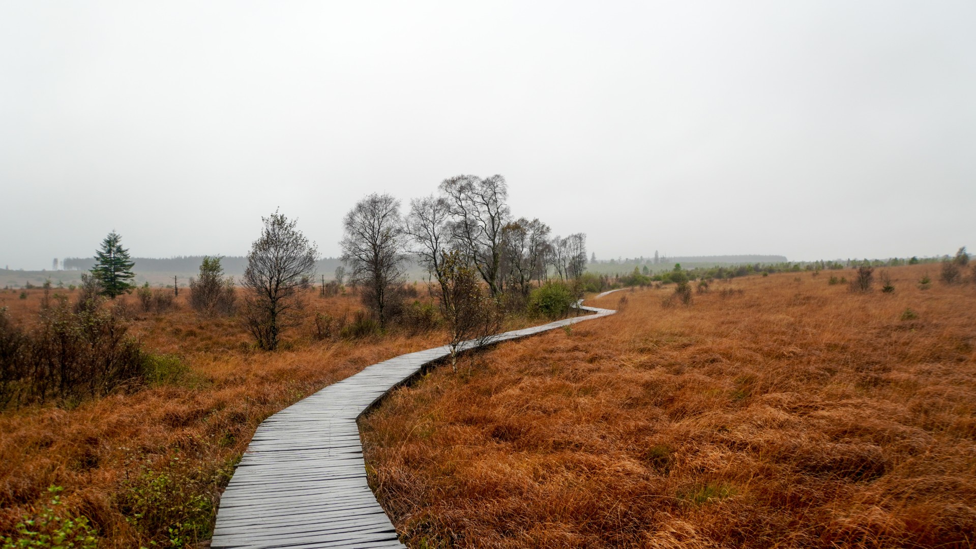 Dag drie breekt aan, en daarmee de langste etappe van de Venntrilogie: 25 kilometer door het hart van de Hoge Venen. Vandaag maak ik echt kennis met de iconische beelden van deze streek: houten vlonderpaden die zich een weg slingeren door desolate heidevelden en moerassen.