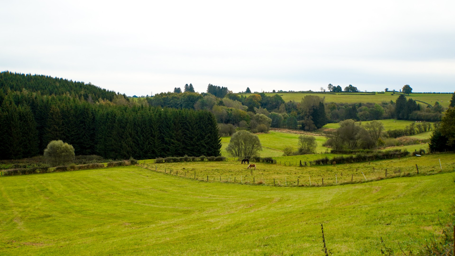 Na de beschutting van het bos opent het landschap zich: uitgestrekte velden rollen uit tot aan de horizon. Hier wandel ik door een lappendeken van weilanden, verbonden door een reeks hekjes en poortjes. Pony’s, paarden, schapen en ezels begroeten me nieuwsgierig, en zetten de toon voor de gastvrijheid van anderen die ik nog zal tegenkomen op de Venntrilogie.