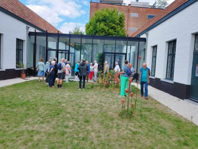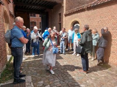 Luc Vermoesen, deskundige monumentenzorg, begon zijn rondleiding in het begijnhof. Over de godshuizen, de berg van barmhartigheid en de pelgrimstafel kon hij in de nog resterende gebouwen van het noordelijk gedeelte van de stad veel vertellen.