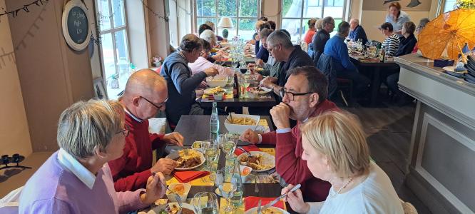 Er is nog wat vrije tijd om na te genieten op het terras vlak bij de Abdij van Zevenkerke om dan met de autocar terug te rijden naar Aalst (aankomst verwacht rond 19u).