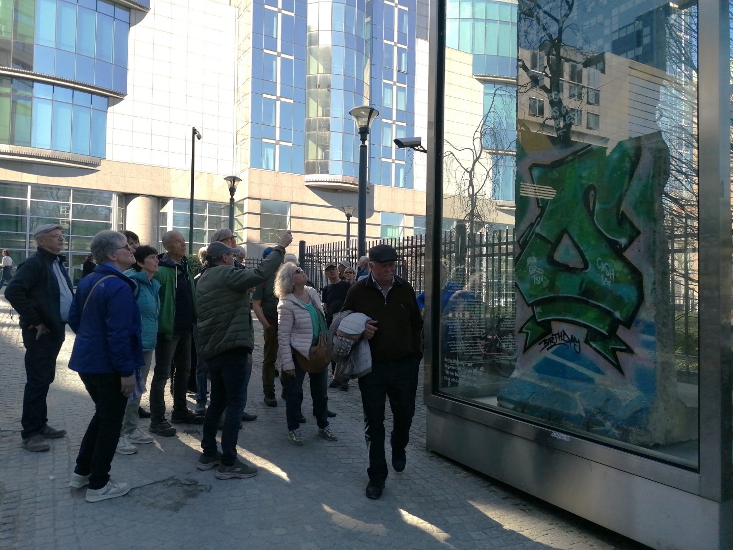 We maken een rustige wandeling met gids die ons boeit met de geschiedenis, contrasten in tijdsgeest en architectuur in het Europees centrum van België.