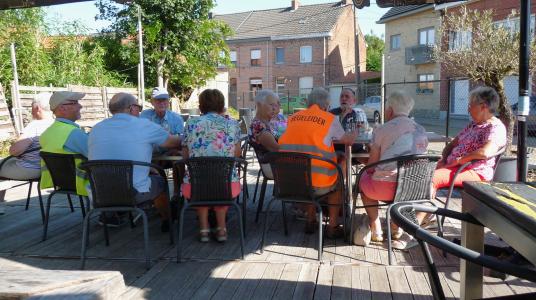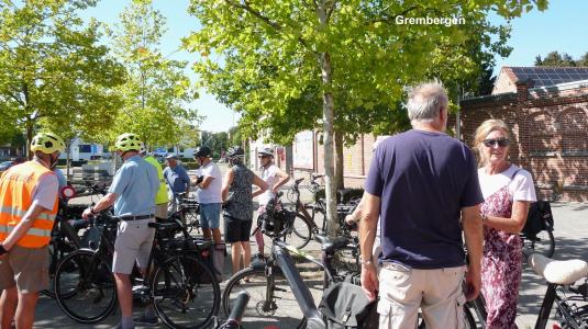 Onder een blauwe hemel fiesten we naar Zele Avermaat, langs en op de Scheldedijk komen we in Grembergen. Waar we in Den Hof een tussenstop hadden. We fietsen verder naar Hamme Zogge en